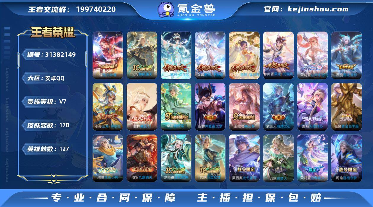 贵族等级:V7 典藏皮肤数:1 珍品无双皮肤数:0 无双皮肤数:0 珍品传说皮肤数:0 传说皮肤数:15 史诗皮肤数:54 皮肤数:178 英雄数:127 段位:至圣王者 卖家说:省标在榜戈娅巅峰1980分 附带一个封号十年的端瓦账号,价值2k
