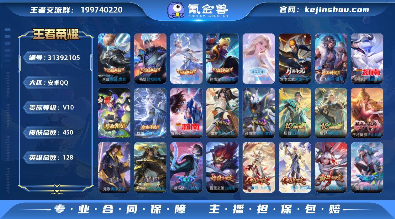 4典藏,6个珍品传说,42个传说皮肤,拥有白虎志,至尊宝。