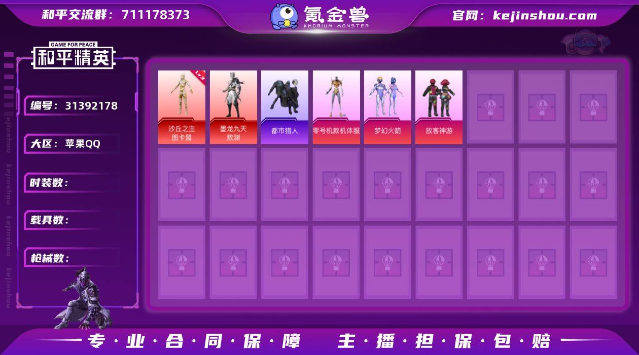 安卓 手Q-21粉装-18特效枪-5载具-8粉色飞行器-149172热力值-22王牌印记-292套装-432枪皮 【热门品类】:粉装-缤纷油彩,绝对防御上衣,套装-都市猎人,角色-军刀雅典娜,旭日初心兜帽大衣,套装-龟仙人,套装-粉红小猪 【粉色套装】:角色-绝对恒星,粉装-缤纷油彩,粉装-王牌四分卫,粉装-星之彼岸,粉装-馨动时刻,粉装-暗夜玫瑰,粉装-彩虹鹿灵,粉装-山涧鹿灵,粉装-妙趣可丽,粉装-心之回忆,粉装-纯珍童话,角色-呆萌星弥,角色-圣堂之誓,角色-美雪,角色-光极星,套装-创世·救赎,角色-千金淑猫,角色-晶梦幻蝶,角色-樱桃泡泡,粉装-星穹咏叹调,粉装-幻彩电音 【粉色枪皮等级】:AKM-星际浪客(七级),SCAR-L-锦绣绵绵(五级),M416-五爪金龙(七级),GROZA-镜光银凌(五级),AUG-暖羊咩咩(五级),ARX-无垠阁(六级),UMP45-量子极限(五级),AKS-74U-信仰神谕(七级),AKS-74U-森灵之息(五级),Kar98K-巳巳如意(五级),Mk14-盛世惊鸿(三级),Mk14-樱桃泡泡(七级),M249-绝对恒星(五级),DP-28-暗夜鎏金(七级),DP-28-豹影疾电(五级),MG-36-幻彩电音(五级),MG-36-沧焰双生(五级) 【粉色载具】:玛莎拉蒂Ghibli(粉),宾利BATUR(极速紫),宝马X6 M(曼岛绿),盛世惊鸿摩托车,晶梦灵驹 【粉色枪皮】:AKM-星际浪客,SCAR-L-锦绣绵绵,M416-五爪金龙,GROZA-镜光银凌,AUG-暖羊咩咩,ARX-无垠阁,UMP45-量子极限,AKS-74U-信仰神谕,AKS-74U-森灵之息,Kar98K-巳巳如意,Mk14-盛世惊鸿,Mk14-樱桃泡泡,M249-绝对恒星,DP-28-暗夜鎏金,DP-28-豹影疾电,MG-36-幻彩电音,MG-36-沧焰双生 【粉色飞行器】:绝对恒星飞行器,炫彩糖果飞行器,星际浪客飞行器,龙翔九天飞行器,凤舞九天飞行器,万象金身飞行器,灵猫魔法师飞行器,极意拳锋飞行器 【粉色降落伞】:绝对恒星降落伞,精灵迷巫降落伞,心之恋语降...