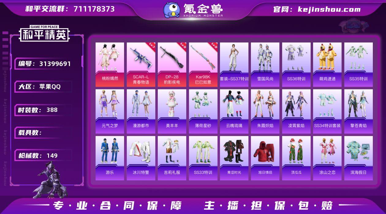 【特价出售 SCAR-L-青春物语 (7级) 】苹果Q-1粉装3特效枪6热门99套装147枪皮 38256热力值 5印记 历史卓越王牌11星 【1粉装】 桃粉嫣然 【3特效枪】 Kar98K-巳巳如意 (5级) DP-28-豹影疾电 (5级) SCAR-L-青春物语 (7级) 【6热门】 龟仙人 浪漫假日 团圆交子 瑞龙福将 M762-奇异狩猎者 M762-瑞龙福将