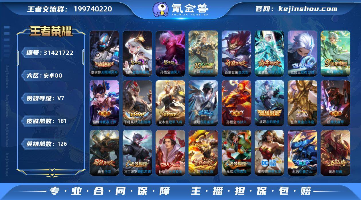 安卓Q-V7-至尊星耀IV段位-126英雄-181皮肤-1典藏皮肤-13传说-59史诗【荣耀典藏】:夏侯惇无限飓风号【传说皮肤】:后羿神树通天,桑启鸣野蒿,兰陵王默契交锋,诸葛亮时雨天司,铠绛天战甲,虞姬启明星使,张良黄金白羊座,干将莫邪久胜战神,虞姬云霓雀翎,百里玄策白虎志,花木兰冠军飞将,貂蝉仲夏夜之梦,孙悟空地狱火【限定皮肤】:白起狰,姜子牙天穹之誓,狄仁杰阴阳师,赵云皇家上将,赵云引擎之心,妲己时之彼端,嬴政白昼王子,孙尚香蔷薇恋人,庄周云端筑梦师,阿轲迷踪丽影,孙膑天狼运算者,芈月幻夜卜梦,吕布猎兽之王,周瑜赤莲之焰,元歌云间偶戏,甄姬幽恒,甄姬落雪兰心,典韦岱宗,马可波罗暗影游猎,狄仁杰魔术师,狄仁杰万华元夜,达摩星际陆战队,达摩沙漠行僧,项羽海滩派对,安琪拉魔法小厨娘,程咬金演武夺筹,刘邦夺宝奇兵,兰陵王默契交锋,亚瑟潮玩骑士王,孙悟空大圣娶亲,后羿辉光之辰,李元芳银河之约,李元芳云中旅人,虞姬启明星使,钟馗神迹守卫,杨玉环遇见飞天,杨戬潮玩骑兵,女娲朔望之晖,雅典娜单词大作战,蔡文姬奇迹圣诞,蔡文姬繁星吟游,东皇太一逐梦之光,鬼谷子原初探秘者,诸葛亮时雨天司,黄忠烈魂,百里玄策白虎志,弈星混沌棋,沈梦溪星空之诺,裴擒虎李小龙,狂铁御狮,米莱狄御霄,米莱狄胡桃异想国,云中君纤云弄巧,猪八戒西部大镖客,嫦娥暖冬兔眠,蒙犽狂想玩偶喵,桑启海盐诗旅,刘邦剑破天穹,程咬金群星魔术团【年限皮肤】:后羿辉光之辰,百里玄策白虎志,甄姬幽恒,典韦岱宗,诸葛亮时雨天司【赛季限定】:白起狰,狂铁御狮,米莱狄御霄,弈星混沌棋,鬼谷子原初探秘者,狄仁杰万华元夜,程咬金演武夺筹,达摩沙漠行僧,李元芳云中旅人,桑启海盐诗旅,刘邦剑破天穹,姜子牙天穹之誓,东皇太一噬灭天穹,太乙真人谧流熔炉,钟馗虚灵犬护,亚瑟荣光...