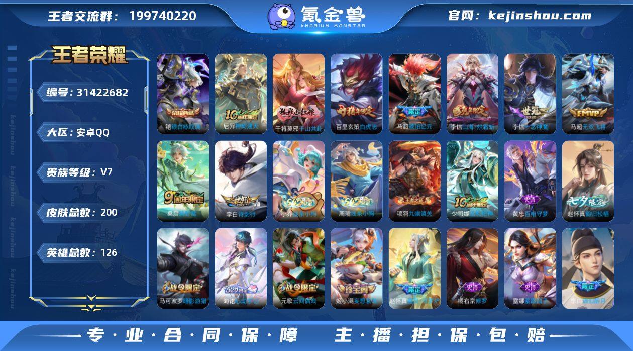 赵怀真,马超,玄策,橘右京,李信,哪吒,杨戬省标。省五赵怀真,凯有典藏皮肤。有改名卡。李信赵怀真全皮