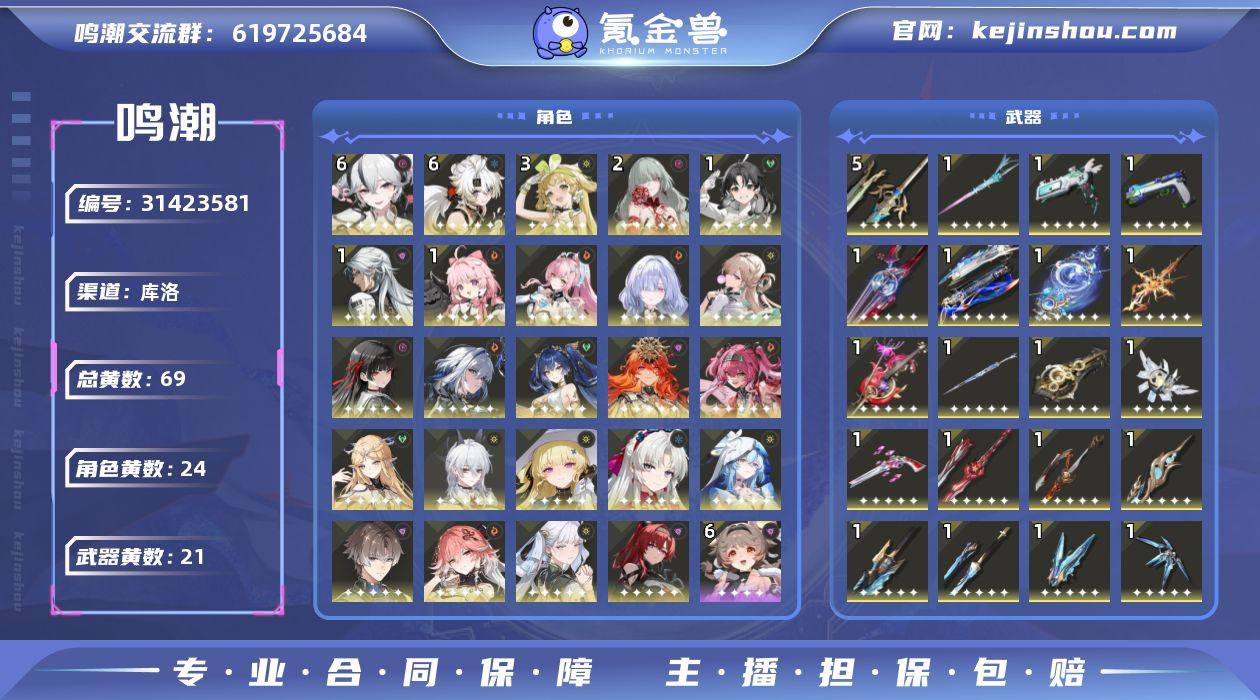 特征码,稀有四位uid。全收集,包括联动皮肤头像(无128大月卡介意勿拍)。满命椿,其余六星如下,队伍都毕业了,随便爽玩。还有小半年月卡,全服饰,车架也有。后面没什么时间养了来个老板收了回回血。(TapTap已绑,已购12款游戏,可送)