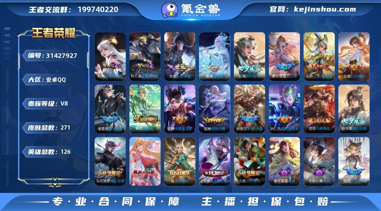 【V8 2星传说 15传说 271皮肤 126英雄】中路30段,一念神魔,鹤羽星尊,仲夏夜之梦,猫影幻舞,零号·赤焰,超时空战士(狄仁杰),前尘镜,山海·琳琅生,启明星使,时之奇旅,霜月吟,群星魔术团,鹤归松栖(云缨),鸣野蒿,幻光神枪df4-70,编号:SXFJV29