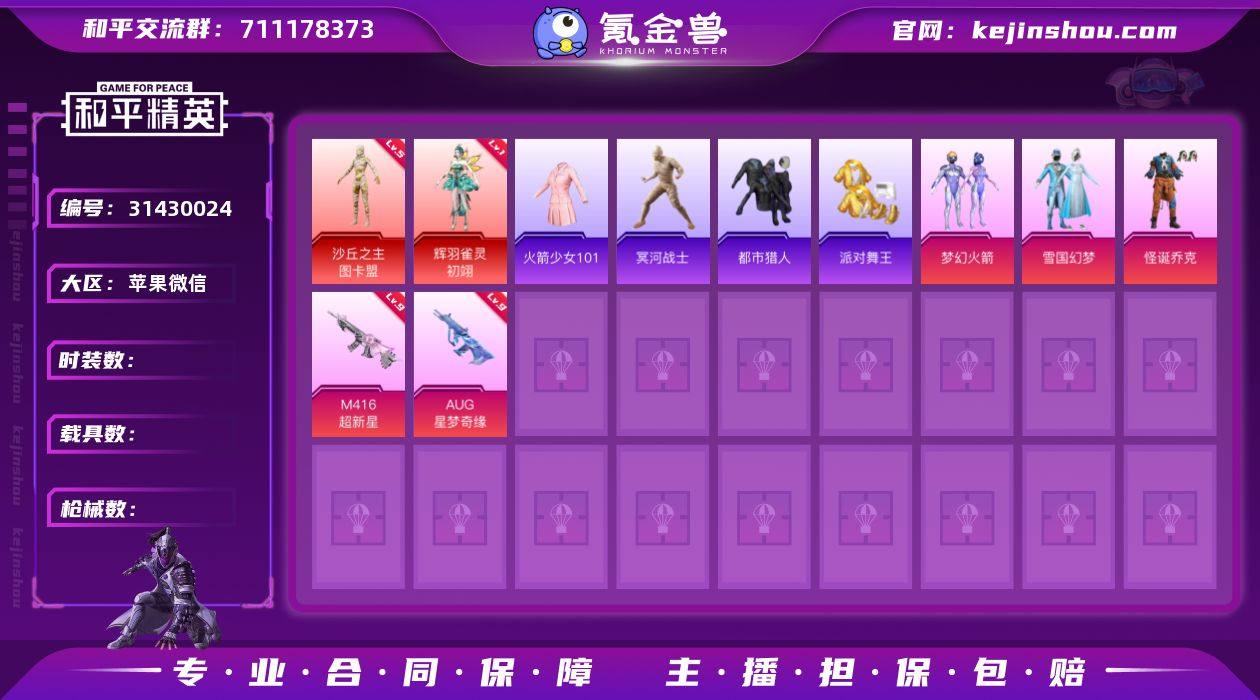 安卓手Q-21王牌印记-8红装-67粉装-40特效枪-9载具-热力值-377套装-509枪皮-5卓越印记-2传奇印记 【8红装】沙丘之主-图卡盟/1级,墨龙九天-敖渊/1级,梦海之灵-妮芮妲/1级,精灵之光-露米娜/6级,辉羽雀灵-初翊/1级,圣域龙灵-瑞拉/1级,魔童闹海-哪吒/1级,魔童闹海-敖丙/1级 【67粉装】套装-极限特训,套装-幻影战神,套装-甜心巧克力,套装-宝贝奶油派,套装-天使彩虹糖,套装-雪国幻梦,套装-梦幻火箭,套装-蝶舞迷情,套装-缤纷油彩,套装-放客神游,套装-新星烈龙,套装-极致幻想,套装-独舞天鹅,套装-冰霜白皇,套装-童趣迷兔,套装-炙焰红王,套装-彩虹鹿灵,套装-山涧鹿灵,套装-星夜魔法师,套装-蜜桃特工,套装-蝶舞蔷薇,角色-洛天依,套装-星之彼岸,套装-精灵娃娃,套装-酣梦娃娃,套装-绚丽摇曳,套装-橘柚倾心,套装-紫电风暴,套装-暖熊萌萌,套装-霞光圣骑,套装-寒光使者,套装-甜梦小狐,套装-冰川粉黛,套装-冰川幽秘,套装-冰川红玫,套装-旋转彩虹,角色-小可学妹,角色-呆萌星弥,套装-纯珍童话,套装-第五大道,套装-仲夏莫吉托,套装-莲影清波,套装-未来歌姬,套装-镜光幻境,角色-圣堂之誓,角色-小叽联名款,套装-暖暖奶龙,套装-憨憨奶龙,套装-傲傲奶龙,角色-小蓝,角色-严莉莉,角色-守护天翼,角色-鸢尾晶梦,角色-星梦奇缘,角色-初号机 觉醒Ver.,角色-千金淑猫,角色-樱桃泡泡,角色-智耀战神,套装-雪月幻音,角色-翎光蝶翼,角色-狂魅哈莉,套装-幻彩电音,角色-冷漠罗丽,角色-羊梦糖心,角色-荧海星豚,角色-绯月迷踪,角色-奇迹舞步 美雪 【40特效枪】AKM-幽焰骑士/3级,AKM-甜心宝贝/3级,M762-甜心娃娃/7级,SCAR-L-金蛇镇世/3级,SCAR-L-魔童闹海 哪吒/3级,SCAR-L-青春物语/2级,GROZA-香水柠檬/6级,AUG-星之彼岸/5级,Famas-翎光蝶翼/7级,M416-五爪金龙/1级,M416-心之恋语/7级,蜜獾-荧海星豚/3级,Kar98K-巳巳如意/5
