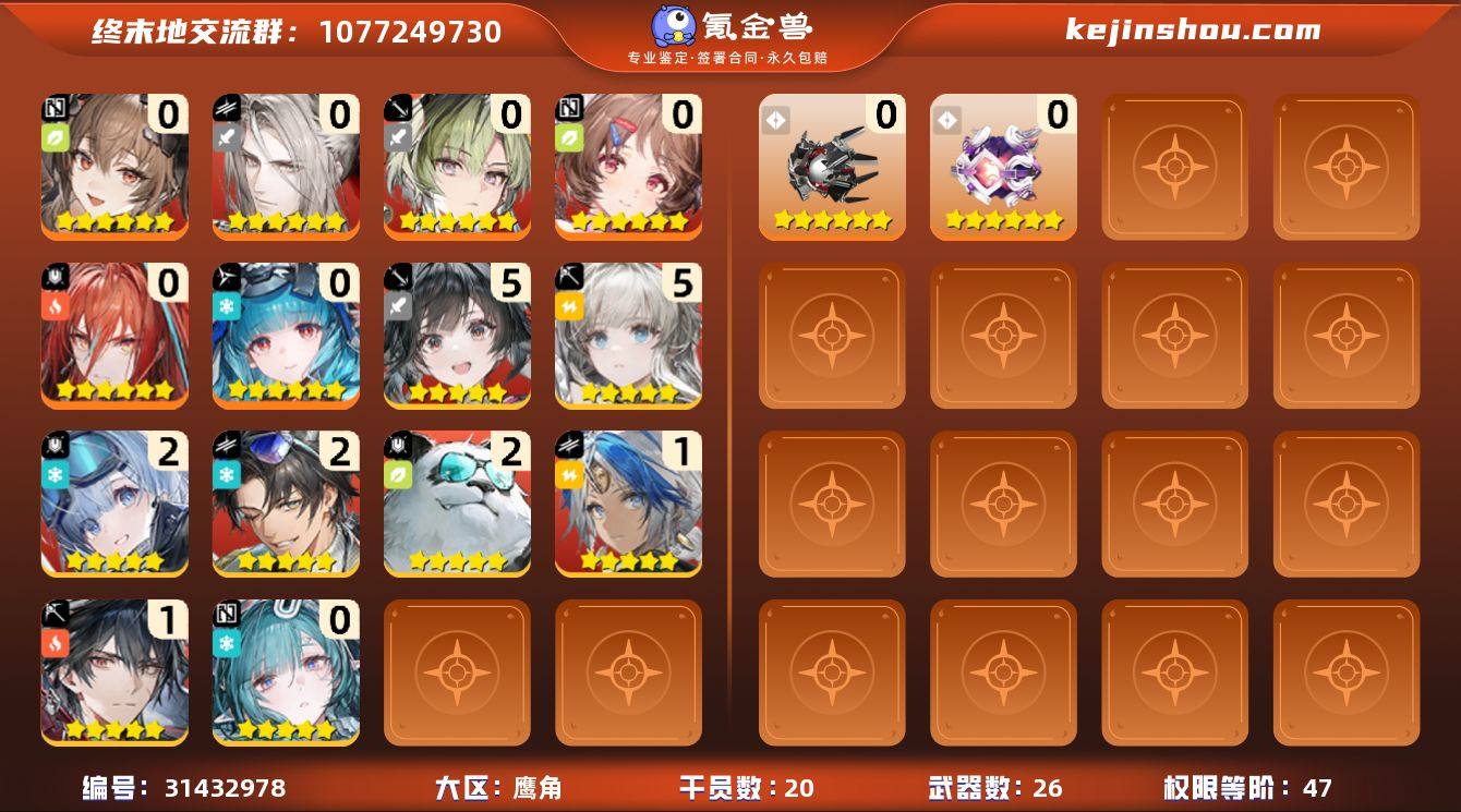 常驻六星全齐,有洁哥和专武,武库配额还有八千多,还有二十抽,地图几乎没动,号比较欧