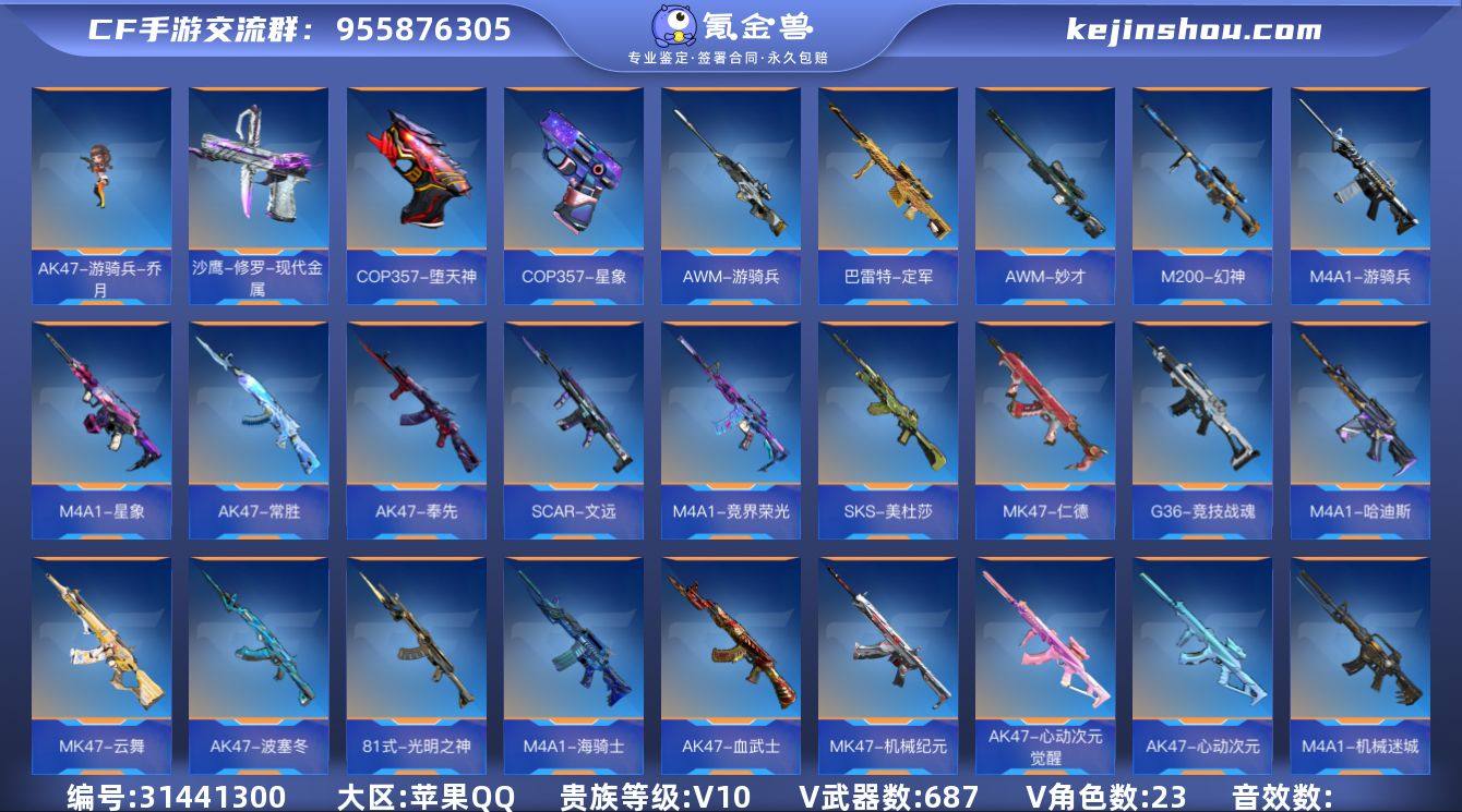 FC-KGSECE 苹果QQ,成人号:是,角色等级:174,实名:有修改人脸机会/实名是本人,段位:大师SS,VIP等级:V10,V武器数量:687,V角色数量:23,V总数量:359,王者武器数:46,万化数量:736, 【人物角色】孙悟空,洛克,关小雨,海滩夜玫瑰,子涵,由乃,英雄兰,瞳,香香,樱,幽灵刀锋-觉醒,大老师,堕天使,周年庆纪念赛斯,复仇者,运动宝贝兰,铁骑,洛伊,萝拉,夏日灵狐,暗影,刀锋队长,春节兰,夜玫瑰-2017,圣诞灵狐,刀锋-2017,审判者,曼陀罗,白狼,幻影,兰,潘多拉,灵狐者,猎狐者,刀锋,奥摩,斯沃特,秦师,武媚,杨玉凝,云悠悠-心动起点,蝉,木兰,奥妹,蜀雪,月神,灵动武士,零-水下丽影,麻雀,职场灵狐-赛事经理,岚兮儿,春,斯薇特, 【王者武器】王者之兽,王者之魄-冠军珍藏,蝴蝶刀-天神,王者之蝶,王者之势闪光弹,王者之势手雷,王者之心手雷,王者之翼手雷,王者之影手雷,王者之兽手雷,王者之圣手雷,王者之心烟雾弹,王者之心闪光弹,王者之翼闪光弹,王者之兽闪光弹,王者之影闪光弹,王者之圣闪光弹,王者之兽烟雾弹,王者之影烟雾弹,王者之圣烟雾弹,王者之势烟雾弹,王者之翼烟雾弹,王者之心,王者之影,王者之翼,王者之武,王者之势,王者之怒,王者之光,王者之力,王者之魂,王者之灵,王者之轮,王者之电,王者之锋,王者之啸,王者之刺,王者之击,王者之烈,王者之迹,王者之痕,王者之神,王者之狱,王者之腾,王者之仞,王者之隐, 【至尊套装】影至尊,武至尊,翼至尊,势至尊,力至尊,光至尊,怒至尊,心至尊,魄至尊,狱至尊,神至尊,烈至尊,腾至尊, 【带V枪械】G36-竞技战魂-千变,MK47-云舞-千变,王者之刺-冰霜奇迹,AWM-天龙-英雄战甲,王者之势手雷-冰霜奇迹,王者之圣手雷-冰霜奇迹,王者之心闪光弹-HeartShot,王者之势闪光弹-冰霜奇迹,王者...