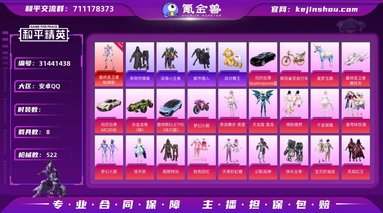 级帕修斯 都市 金鞋 新101 放客 极限特训 满级AUG星梦奇缘 满地铁天赋】c25118-【可二次】【因赛季更新游戏段付以上号为准!】 安卓Q-1红装5稀有8载具30粉装34特效枪41热门341套装522枪皮 20印记 历史卓越王牌16星 【1红装】 最终圣卫者-帕修斯 (3级) 【5稀有】 奇异狩猎者 都市猎人 浪漫天命 派对舞王 派对舞王(金靴子) 【8载具】 玛莎拉蒂M白色 路特斯EL蓝色 玛莎拉蒂Q蓝色 合金龙骨绿色 星梦玉骢 双人摩托梦幻火箭 最终圣卫者摩托车 辉羽雀灵自行车 【30粉装】 圣堂之誓 梦幻火箭 奇迹舞步美雪 天龙座紫龙 宝贝奶油派 天使彩虹糖 千金淑猫 洛天依 金丰海韵 异瞳寒姬 桃粉嫣然 天星战神 星穹咏叹调 呆萌星弥 孙悟空 幻影战神 放客神游 快乐主宰 仲夏莫吉托 青空秋雨 粉色回忆 极限特训 第五大道 冰霜白皇 炙焰红王 炙焰牛王 飓风飞鹰 彩虹甜喵 彩虹鹿灵 海渊国主 【35特效枪】 M416-五爪金龙 (4级) SCAR-L-锦绣绵绵 (5级) M416-电玩时刻 (5级) P90-沙丘之主 (3级) AKM-甜心宝贝 (6级) AKM-幽焰骑士 (3级) AKS-74U-森灵之息 (5级) AKM-绿萝繁花 (5级) Kar98K-圣域龙灵 (3级) Kar98K-巳巳如意 (5级) Vector-最终圣卫者 (3级) M762-青锋波束 (5级) MG-36-沧焰双生 (5级) DP-28-豹影疾电 (5级) SVD-月影灵韵 (5级) AUG-暖羊咩咩 (5级) AUG-星梦奇缘 (9级) UMP45-量子极限 (5级) Mk14-甜梦熊击 (5级) AMR-智耀战神 (4级) GROZA-镜光银凌 (5级) DP-28-圣堂之誓 (5级) 汤姆逊-热量炸弹 (5级) MG3-梦幻舞会 (1级) GROZA-旋转彩虹 (5级) MG3-洛神天依 (5级) Kar98K-未来歌姬 (3级) 平底锅-喜羊羊与灰太狼 (3级) SPAS-12-音爆索尼克 (5级) Vector