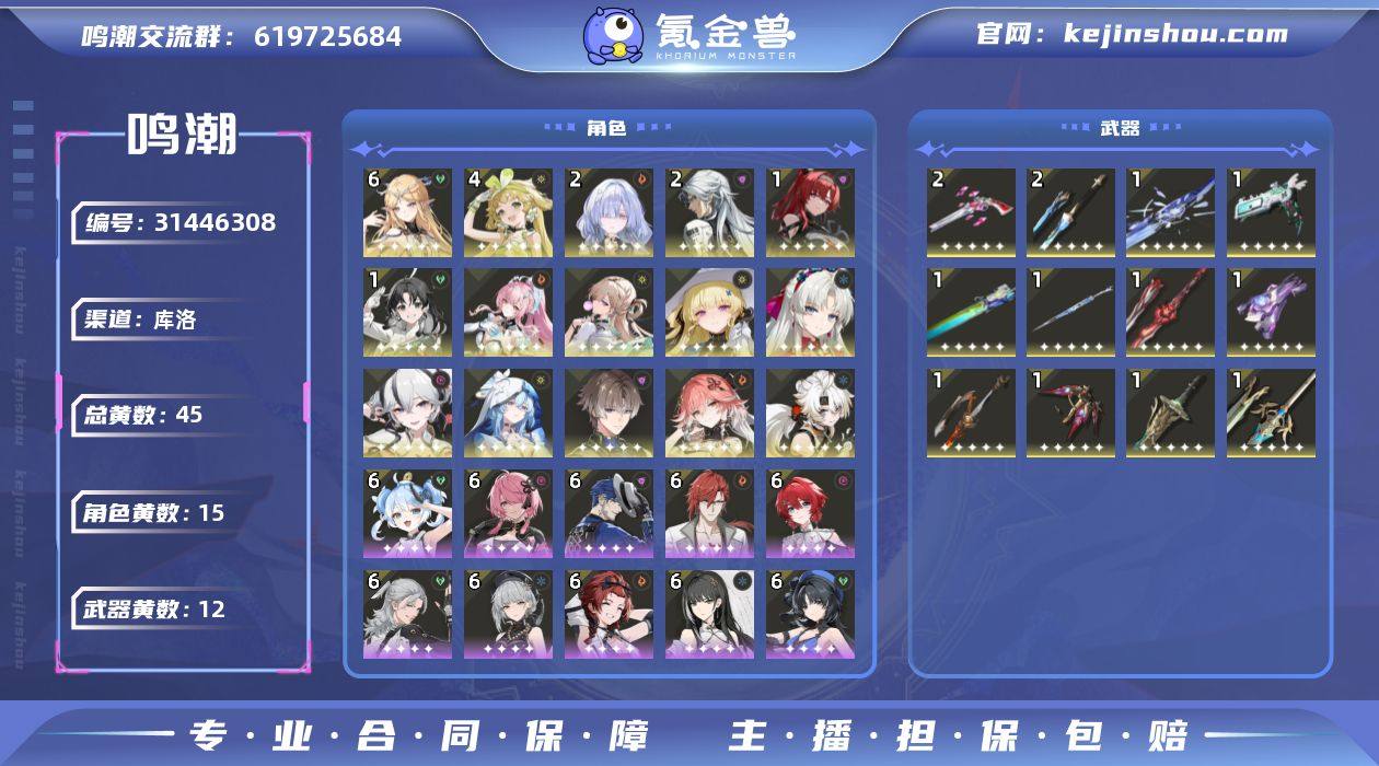 开服老登账号,角色练度毕业,上号秒爽玩,大世界秒杀,深塔海虚随便满星,新地图没开,有一定资源,爱弥斯刚抽的还没养