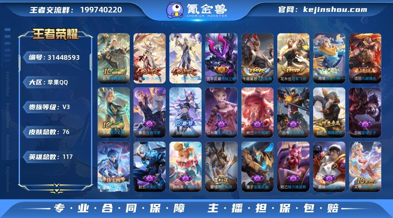 QQ区,当前星耀三满星,有荣耀印记。 6传说皮肤,3限定:2FMVP+1植兽传说。 1颗荣耀水晶未使用,可自选典藏。 英雄铭文齐全,无封禁无违规,平台验号交易,安全放心。