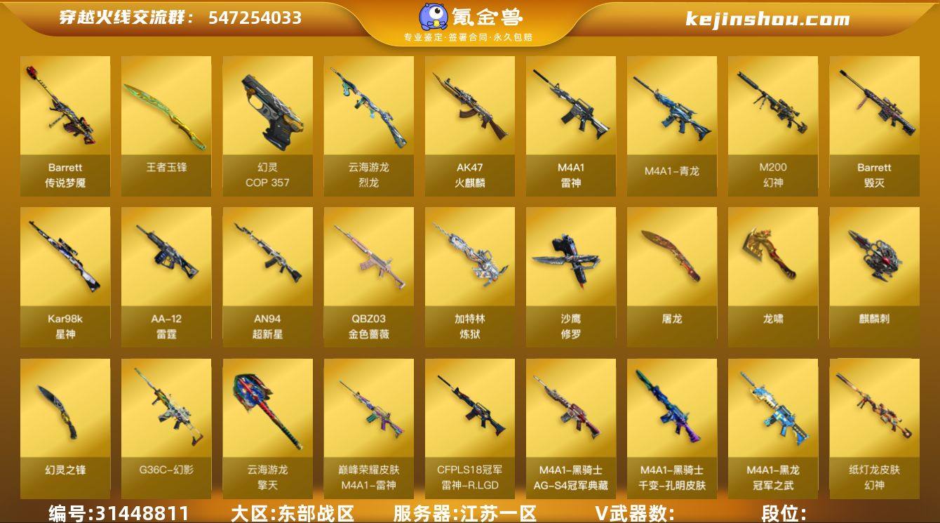 东部战区(江苏一区)ys【精品爆破号】【2.4w点券】双传说【传说影煞,传说梦魇】31v【M200-幻神+四皮/宠儿-2021MVP/N9-2022MVP/冠军之幻/纸灯龙,Kar98k-星神+音效卡,Knife-冠军之刃*2,G36C-幻影,QBZ03-金色蔷薇+皮/巅峰荣耀,Barrett-毁灭,6修罗,COP 357-幻灵,柯尔特-赛博朋克,白虎-枪娘安妮,双面神,KAC-狂怒咆哮,HK21-领域力场,Colt1911-大黄蜂】1王者【王者玉峰】5角色【传说影煞,关小雨,隼,王者潘多拉,云海玲珑】2音效【Kar98k-星神音效卡,加特林-炼狱音效卡】17皮【幻神-宠儿-2021MVP,幻神-N9-2022MVP,幻神-冠军之幻,幻神-纸灯龙,QBZ03-巅峰荣耀,雷神-巅峰荣耀,雷神-R.LGD-CFPLS18冠军,黑龙-冠军之武,龙啸-纸灯龙,黑鲨-电流骇客,毁灭-AG-CFPLS15冠军,雷神-宠儿-2019MVP,黑骑士-AG-S4冠军典藏,修罗-冠军之魂,龙啸-冠军之啸,火麒麟-轻羽】 截图展示段位不代表实际段位 如赛季更新等不可抗拒因素发生变化、时限道具不保证所剩时间