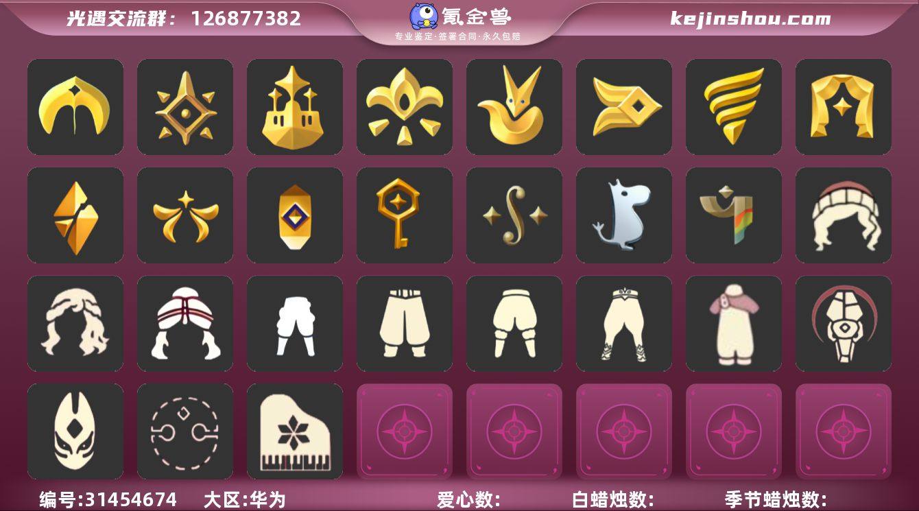17季6翼白枭武士裤巫师帽星月头冠王子围巾星球夹克暖冬瑞雪蝙蝠斗详情看图 资源:蜡烛815 爱心 450 翼6 已毕业地图:全图毕业 毕业季节:小王子季 风行季 潜海季 表演季 破晓季 欧若拉季 追忆季 夜行季 归巢季 九色鹿季 筑巢季 二重奏季 姆明季 半拾光季 彩染季季卡 青鸟季季卡 双星季季卡 毕业季节物品:小王子发型 小王子套装 玫瑰花 多羽发饰 蓝黄羽袖 暗红斗篷 单边小辫 氧气面具 燕尾斗篷 黄眉企鹅面具 白枭发型 双翼遥鲲斗篷 冥龙斗篷 留辨蘑菇头 高领舞服 透明蝶翼斗 肩带 追忆之书 棕熊面具 绒毛斗篷 五塑彩羽发 五塑彩带斗 九色鹿丸子头 九色鹿丝带裤 九色鹿飞天斗篷 设计师长袍 光之子试衣 合奏挂画 蓝色燕尾服 白色高脚钢琴 姆明抱枕 姆明大伞 姆明长裙 稀有礼包:祥云瑞气服饰 海洋发型 巫师帽 南瓜头 星月头冠 绊爱套装 大桔大利 彩虹耳机 巫术犄角 圣诞鹿角 王子围巾 星球夹克 星空斗篷 蝙蝠斗 暖冬瑞雪 欧若拉之翼 祥云雨伞 献瑞折扇礼包 秋千 冥龙南瓜 皮皮猫 大铁头 热门裤子:背带裤 遥鲲长袍 绑带舞服 奔月长袍 妮妮长裙 白棉裤 搓澡巾 紧身连体衣 武士裤 小王子服 羽袖长袍 小丑服 女仆围裙 美工衣 祥云瑞气服饰 热门面具:矮人面具 狐狸面具 黄鼠狼面具 潜海面具 黄眉面具 一字眉 棕熊面具 盲僧眼罩 龙头 红脸蛋面具 黑脸 热门发型:海藻头 爆炸头 大胡子 小飞象 雨妈 卡卡 平菇 龙骨 箬笠 蝴蝶结 公主头 粗辫 水母头 书虫 总裁头 正太 高马尾 明制帽 郡主头 绿丝带 虚荣 小王子头 白枭 圆环发辫 留辫蘑菇头 李逍遥发型 彩色脏辫 彩羽发型 兔子头 春丽丸子头 海洋发型 彩虹帽 南瓜头 巫...