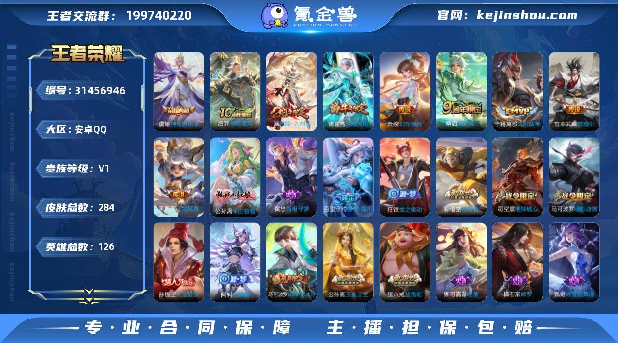 【WZ180534】安卓Q-V0-最强王者段位-126英雄-284皮肤-1典藏皮肤-8传说-84史诗【英雄全皮】:刘邦全皮,狂铁全皮【荣耀典藏】:虞姬神鉴启示录【传说皮肤】:后羿神树通天,澜愿照九州拓,云缨幻光神枪,桑启鸣野蒿,宫本武藏惊梅引,李元芳飞鸢探春,诸葛亮时雨天司,干将莫邪久胜战神【限定皮肤】:白起狰,姜子牙天穹之誓,杨戬破阵退雄兵,狄仁杰阴阳师,虞姬凯尔特女王,赵云皇家上将,墨子神迹守卫,孙尚香蔷薇恋人,高渐离死亡摇滚,阿轲迷踪丽影,钟无艳王者之锤,芈月重明,元歌无心,夏侯惇朔风刀,甄姬游园惊梦,曹操烛龙,典韦穷奇,马可波罗暗影游猎,马可波罗山海玄木吟,狄仁杰魔术师,狄仁杰万华元夜,达摩沙漠行僧,项羽海滩派对,老夫子醍醐杖,老夫子航海奇遇记,程咬金演武夺筹,刘邦夺宝奇兵,韩信逐梦之影,王昭君午后时光,兰陵王金庭之子,孙悟空大圣娶亲,孙悟空孙行者,牛魔御旌,李元芳云中旅人,钟馗驱傩正仪,干将莫邪胡桃夹子,雅典娜黎明之约,蔡文姬繁星吟游,太乙真人饕餮,鬼谷子原初探秘者,鬼谷子五谷丰年,诸葛亮时雨天司,苏烈千军破阵,百里玄策原初追逐者,弈星混沌棋,梦奇顽趣,公孙离玉兔公主,沈梦溪大漠名商,明世隐疑决卦,裴擒虎李小龙,裴擒虎擒涛扼浪,狂铁御狮,狂铁电玩高手,米莱狄御霄,云中君纤云弄巧,盾山御銮,猪八戒猪悟能,上官婉儿梁祝,嫦娥拒霜思,嫦娥暖冬兔眠,西施玲珑珍味,鲁班大师探海日志,桑启海盐诗旅,暃星界游侠,戈娅驭风魔法,艾琳流音漫舞,司空震地狱燃心,阿古朵江河有灵,张良古海寻踪,蒙犽百解令,蒙恬荣光圣徽,鬼谷子天穹祈灯,沈梦溪龙舞盛年,鲁班七号蔬乡物语,李元芳蔬乡物语,刘邦剑破天穹,上官婉儿群星魔术团,周瑜熔金海岸【年限皮肤】:诸葛亮时雨天司,马可波罗山海玄木吟,澜愿照九州拓【赛季限定】:虞姬凯尔特女...