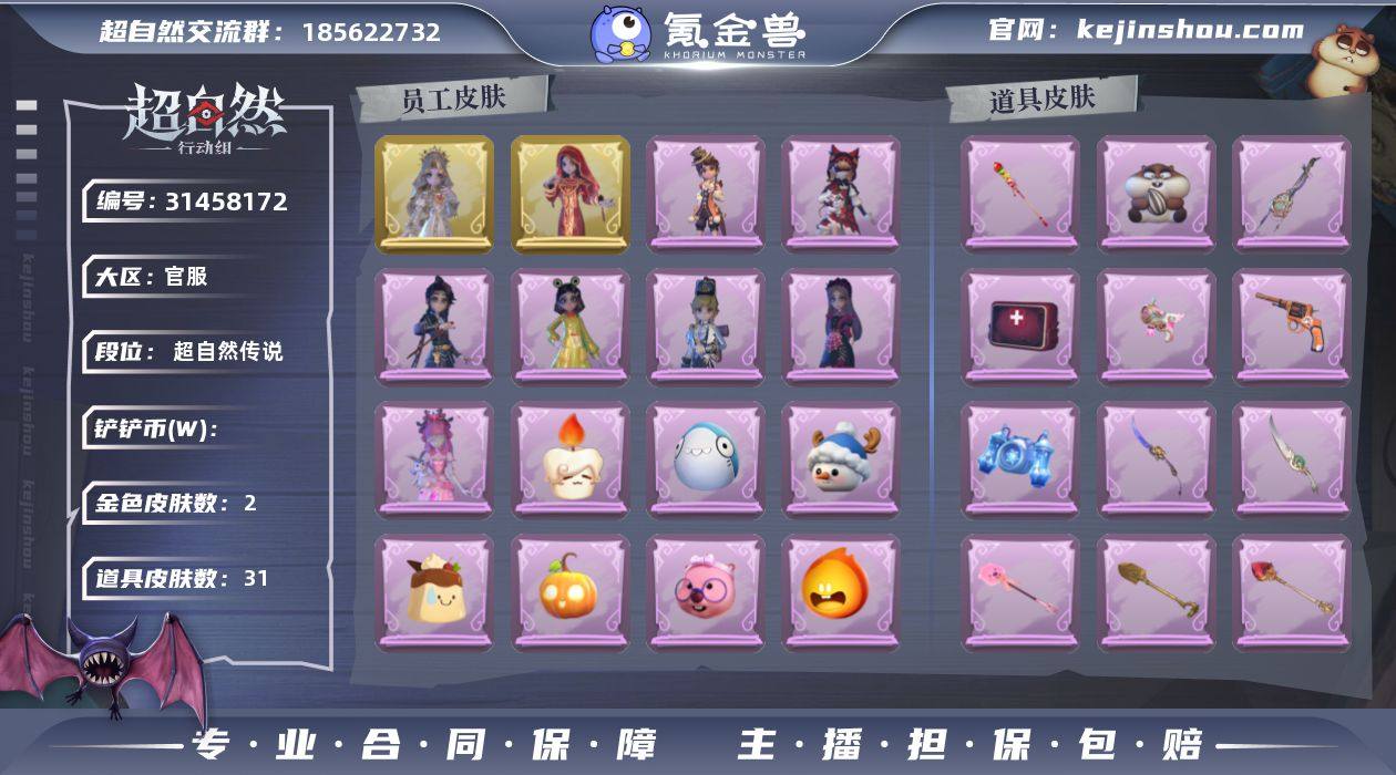 薇薇安圣光之谕,巫灵儿镜花辞,惊奇万圣车皮,三个梦居商店都抽全了随意摆,31个道具皮肤,道具基本都有皮肤了,灵契50000个,怪物农场29级有神圣土拨鼠神圣小狐狸,氪条1880元