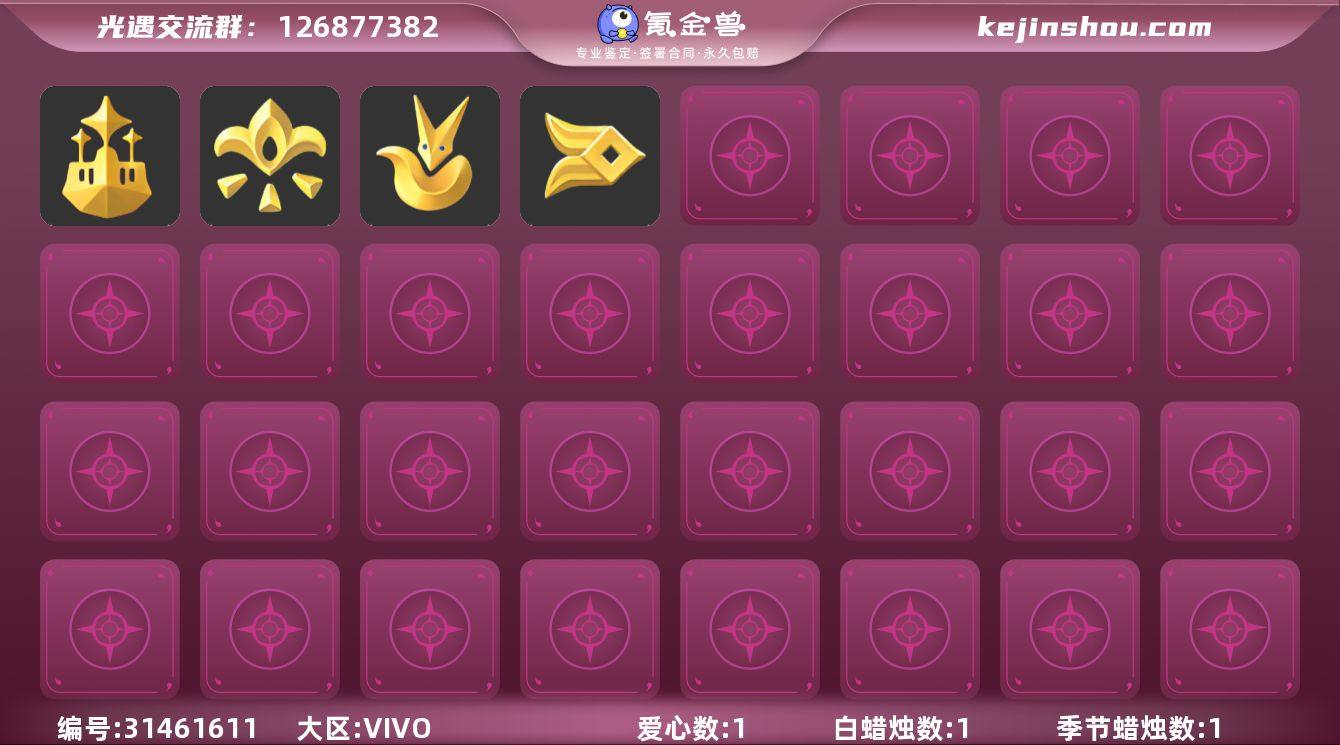 【sh407】 ✅7季白枭玫瑰武士裤tgc蝙蝠蛛丝秋千水晶球超多热门物品礼包✅渠道 :vivo ✅资源:蜡烛:47爱心:69翼数量:181 ✅已经毕业地图:全图毕业 ✅已经毕业季节:欧若拉半,梦想季,集结季,王子季,风行季,潜海季,表演季 ✅稀有礼包:音韵吉他,红脸蛋,星月头冠,彩虹耳坠,彩虹耳机,冥龙角,鹿角,姆明饰品套装,哪咤头,温暖绒帽,鲤跃头套,南瓜头,巫师帽,猫耳发型,绊爱头发,贝壳发饰,蓝色音乐符,雪花发夹,兔子发饰,大橘大利,鲤鱼头饰,晃悠悠,四叶草头饰,TGC斗篷黑,创始人斗篷,小王子斗篷,铜钱斗,鲤跃斗篷,蝙蝠斗,蛛丝斗篷,瑞雪斗篷,白雪斗篷,绊爱斗篷,中秋灯笼,夏日阳伞,情人秋千,情人跷跷板,花憩茶桌,狐狸背包,情人小船,雪花水晶球 ✅热门物品:蝴蝶结,公主头,正太头,樱花头,猫猫头,搓澡巾,武士裤,白棉裤,花环头饰,宴会围巾,虚荣发型,红耳机,黄鼠狼面具,红狐狸面具,花瓣斗篷,红金斗篷,白金斗篷,白鸟斗篷,吉他,高音钢琴,笛子,排箫,铃铛,雨伞