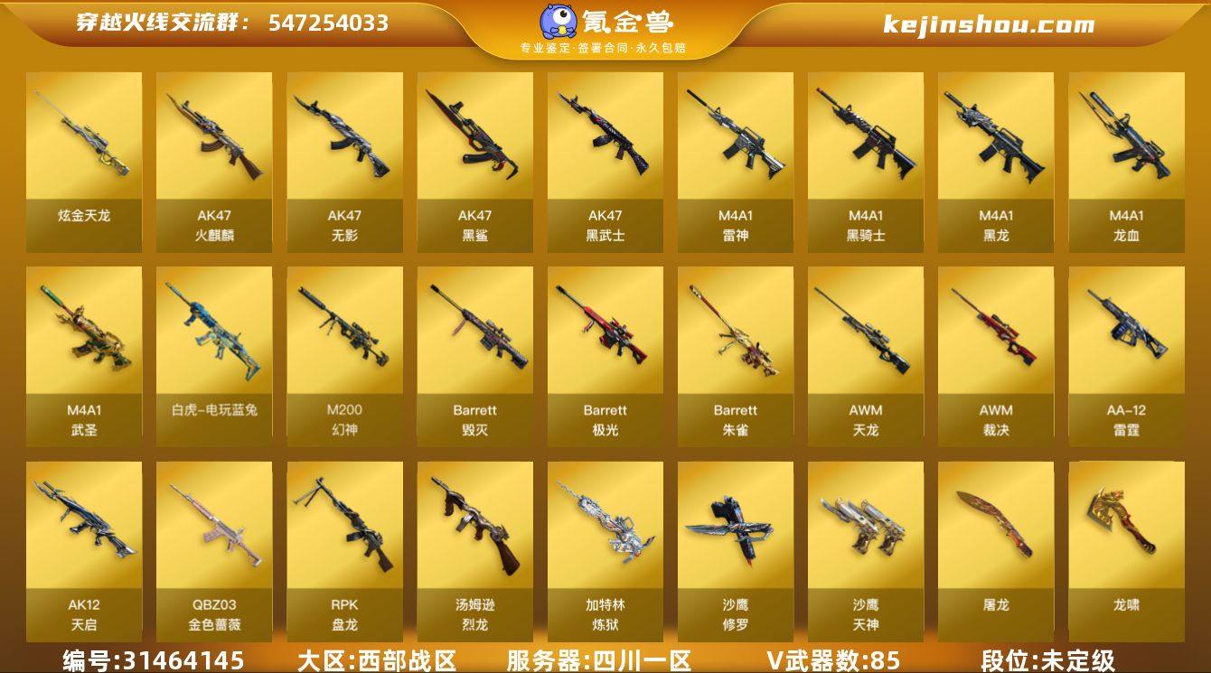 5355/西部/四川一区/可排位/【传奇1】/【Lv.102 荣耀元帅】/VIP6/85V/【挑战满阶段全部完成】/幻神/QBZ金色蔷薇/QBZAGCFPLS19冠军/白虎电玩蓝兔/【裁决三件套】裁决/裁决音效卡/参加叶忙苍灵/火麒麟/雷神/黑骑士/毁灭/极光/黑武士/【生化】6烈龙/炼狱/修罗/*3/USP雷暴/【音效卡】/朱雀音效卡/雷神音效卡/黑骑士音效卡/火麒麟音效卡/毁灭音效卡/【枪皮】毁灭星空/毁灭荣耀之怒/毁灭魔灵/火麒麟AG/雷神虎将/雷神暗月/【角色】樱/战地猎狐/疾风/修道士/铁扇公主/乔伊教练/新海豹突击队/云海玲珑/【道具】/超级背包/各种戒指/各种光效/各种玩偶/永久AC/永久雷包/细节看图/