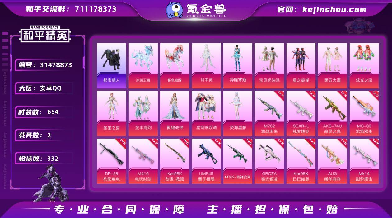 TY647-精品女神号-地铁满天赋-【月中灵,荧海星豚,美雪,异瞳寒姬,第五大道,智耀战神,星穹咏叹调,宝贝奶油派,圣堂之誓,金丰海韵】【都市猎人,浪漫天命,暗影哥特】【地铁超多装备】【七级激战未来】安卓手Q-12粉装-21特效枪-2载具-10粉色飞行器-114355热力值-17王牌印记-185套装-332枪皮 【热门品类】:套装-浪漫天命,角色-军刀雅典娜,套装-忍者信条,套装-龟仙人,大砍刀-青龙偃月刀 【粉色套装】:粉装-宝贝奶油派,粉装-星之彼岸,粉装-第五大道,粉装-炫光之旅,角色-圣堂之誓,粉装-金丰海韵,角色-智耀战神,粉装-星穹咏叹调,角色-荧海星豚,角色-奇迹舞步 美雪,角色-异瞳寒姬 【粉色枪皮等级】:SCAR-L-纯梦嫁纱(六级),M416-电玩时刻(五级),M416-灵猫魔法师(三级),GROZA-镜光银凌(五级),AUG-暖羊咩咩(五级),M762-激战未来(七级),M762-青锋波束(五级),蜜獾-异瞳寒姬(四级),UMP45-量子极限(五级),汤姆逊-热量炸弹(五级),AKS-74U-森灵之息(五级),P90-沙丘之主(三级),Kar98K-创世·救赎(五级),Kar98K-巳巳如意(五级),M24-镜域双华(三级),Mk14-甜梦熊击(五级),DP-28-豹影疾电(五级),MG-36-沧焰双生(五级) 【粉色载具】:冰绡玉鳞,暮色幽蹄 【粉色枪皮】:SCAR-L-纯梦嫁纱,M416-电玩时刻,M416-灵猫魔法师,GROZA-镜光银凌,AUG-暖羊咩咩,M762-激战未来,M762-青锋波束,蜜獾-异瞳寒姬,UMP45-量子极限,汤姆逊-热量炸弹,AKS-74U-森灵之息,P90-沙丘之主,Kar98K-创世·救赎,Kar98K-巳巳如意,M24-镜域双华,Mk14-甜梦熊击,DP-28-豹影疾电,MG-36-沧焰双生,信号枪-金乌曜日 【粉色飞行器】:萌物绒绒飞行器,沙丘之主天马,凤舞九天飞行器,雀灵庇佑飞行器,幻星舰长飞行器,智趣喵喵飞行器,灵猫魔法师飞行器,飞天猪飞行器,灵珠游龙飞行器 【稀有套装】:套装-龟仙...