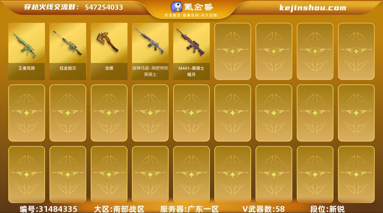 【FC-GJE64K】 四防影煞/四防隼/幻神+星耀+电流/竞技套/星神+音效卡/云龙套手枪*2/炽芒蝶刃/白虎/金蚀/天罚+音效卡/裁决+流光/王者风势/风吟之魄/雷神三件套/极光+音效卡/ 广东一区,等级100,王者武器3,炫金武器2,V武器58, 【英雄角色】传说影煞,华,隼,关小雨,机械姬,星际战将,灵狐者-职业经理,云海玲珑,灵动武士,猎狐者, 【V武器】M200-幻神,M200-竞技荣光,Kar98K-星神,Barrett-毁灭,AWM-裁决,VSK-94-金蚀,Scar Light-白虎,QBZ03-云龙,QBZ03-天罚,RPK-盘龙,加特林-炼狱,柯尔特-竞技荣光,COP 357-云龙,炽芒蝶刃,Barrett-极光,M4A1-雷神,M4A1-黑龙,M4A1-死神,AK47-火麒麟,AK47-黑鲨,AK12-天启,黑武士-锦绣游龙,沙鹰-天神,屠龙,麒麟刺,擎天,擎天-竞技荣光,龙啸-烈火龙威,云龙扇,高爆手雷-竞技荣光,闪光弹-竞技荣光,烟雾弹-竞技荣光,高爆手雷-云龙,闪光弹-云龙,烟雾弹-云龙,手雷-云海游龙,手雷-热带奇洋, 【王者武器】王者风势,王者风神-觉醒版,凤吟之魄,王者风神-觉醒版, 【狙击枪稀有皮肤】幻神-星耀 皮肤,幻神-电流骇客 皮肤,裁决-流光秘银, 【步枪稀有皮肤】雷神-脉冲核心,火麒麟-CFSTAR,火麒麟-暗月,AK47-火麒麟-传奇EVEN,黑骑士-暗月,黑骑士-战神马超, 【近身武器稀有皮肤】屠龙-星火燎原, 【音效道具】Kar98K-星神音效卡,Barrett-极光音效卡,QBZ03-天罚音效卡,M4A1-雷神音效卡, 【小人枪】5-炽火炎龙,魔能飞环-曼陀罗,迷你生化手雷,AWM-灵狐-15周年嘉年华,M37-葵,生化手雷-机甲核心,白虎-迷你小艾,迷你地狱终结者,炼狱-秦师, 【武器】火麒麟-雷神,源-黑龙,M4A1-十二生肖·龙-雷神,加特林-炼狱-掌火,魂·炼狱-玩具枪,魂-雷神-萌杀,源·龙啸,源·天神,源·屠龙,源·青龙,源·天龙,源-金色蔷薇,源·天启,源·雷神,源·机械迷...