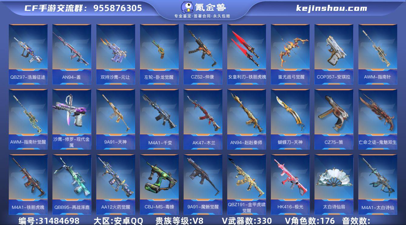 V8/18王者/330英雄/AK雷霆王者+冰皮/王者之魄+拉丝皮/王者之心+拉丝皮/王者之影/王者之兽/王者之怒*2/王者之狱+冰皮/王者之烈/王者之蝶/M12S雷霆王者+冰皮/王者之魂+拉丝皮/王者之锋/王兽闪光烟雾/王圣闪光烟雾/王影烟雾弹+拉丝皮/AK奉先+无双/M4星象/AN94盖/M4游骑兵/M4竞界荣光/M200幻神+战舞/AWM妙才/TAC慈/AWM游骑兵+寒霜/98K蜻蜓/CZS2仲康/VEPR12宙斯/VEPR12本初/黑龙魂/雷霆COP*2/堕天神COP/安琪拉COP/黑铁COP/4屠龙/方天画戟+无双/炽芒蝶刃/角色/祝融夫人/消灭音效/能量核心/赏金猎人/斩杀/无双/狙击枪线/字/机甲核心/