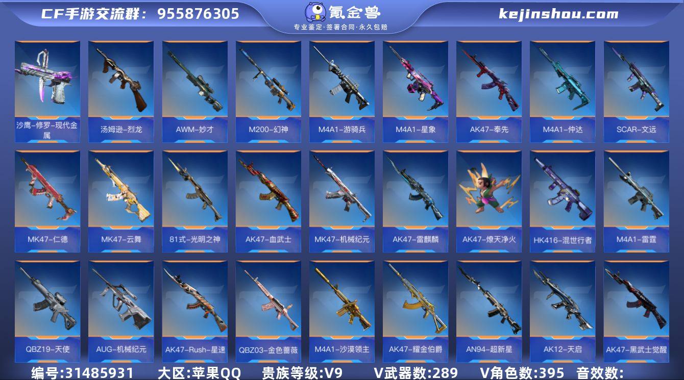 苹果QQ,成人号:是,角色等级:150,实名:有修改人脸机会/实名是本人,段位:专家S,VIP等级:V9,V武器数量:395,V角色数量:12,V总数量:289,王者武器数:37,万化数量:507, 【人物角色】晴雅,关小雨,子涵,樱,大老师,堕天使,审判者,曼陀罗,幻影,赛斯,潘多拉,奥摩,斯沃特,云悠悠-心动起点,蝉,雅典娜, 【王者武器】王者之誉,王者之业,王者之竞手雷,王者之竞烟雾弹,王者之竞闪光弹,王者之兽,蝴蝶刀-天神,M12S-雷霆王者,王者之蝶,王者之心手雷,王者之兽手雷,王者之心烟雾弹,王者之心闪光弹,王者之兽闪光弹,王者之影闪光弹,王者之圣闪光弹,王者之兽烟雾弹,王者之影烟雾弹,王者之翼烟雾弹,王者之心,王者之影,王者之魄,王者之戮,王者之怒,王者之光,王者之魂,王者之灵,王者之锋,王者之啸,王者之击,王者之烈,王者之圣,王者之迹,王者之城,王者之神,王者之狱,王者之隐, 【至尊套装】怒至尊,心至尊,魄至尊, 【带V枪械】王者之锋-HeartShot,AWM-天龙-英雄战甲,MR1-龙吟惊沧海-千变,王者之心闪光弹-HeartShot,王者之心烟雾弹-HeartShot,AK47-无影-汗血之征,CZS2-善财童子-千变,M4A1-雷霆,M4A1-仲达,M4A1-星象,沙鹰-火麒麟...