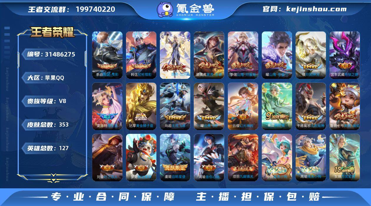 苹果手Q130区353皮2典藏18传说0无双 营地ID1833970132(可二次)V8至尊星耀III 【荣耀典藏】:弑枪猎影,鸣剑·曳影【优质限定皮肤】:至尊宝,山海·炽霜斩,山海·苍雷引,无双飞将【传说皮肤】:久胜战神,黄金狮子座,寅虎·赤拳,寅虎·瑞焰,启明星使,幻光神枪,愿照·山河定,鸣野蒿,地狱之眼,胖达荣荣,音你心动,浮生妄,山海·炽霜斩,山海·苍雷引,云鹰飞将,时之恋人,无双飞将,炽阳神光【特殊英雄】:嬴政,【史诗皮肤】:猫狗日记,线条小狗,九幽镇关,万灵启世,罗小黑战记,涂山容容,云间偶戏,百相守梦,白蛇,百相守梦,摇滚巨星,石田雨龙,千年之狐,乱世虎臣,箭羽风息,时之恋人,器灵·浮梦炉,原初追逐者,茶境仙,星界战将,月团寄思,节奏热浪,圣诞恋歌,梁祝,妄想食味,圣诞狂欢,地狱岩魂,破空之剑,德古拉伯爵,战舞者,顽岩魄,蓝屏警告,蔬乡物语,暗渊魔法,缤纷独角兽,琥珀纪元,燃音魔法,偶像歌手,绅士熊喵,荣光圣徽,热力回旋,百解令,黎明之约,星夜王子,地狱燃心,水晶猎龙者,江河有灵,冰雪圆舞曲,鹤归松栖,暗隐猎兽者,驭风魔法,乘风破浪,电玩·爆裂旋风,狂想玩偶喵,奇幻香踪,顽趣,至尊宝,暗夜贵公子,龙胆,星界游侠,水果甜心,心灵骇客,末日机甲,山海·玄木吟,赏金猎手,无心,岱宗,超时空战士,五谷丰年,功夫厨神,女仆咖啡,天狼狩猎者,航海奇遇记,电玩高手,朱雀志,逐浪之夏,吟游魔法,鬼剑武藏,火炮绅士,幽灵船长,魔术师,晚萤,皇家上将,寅虎·御盾,匿光追影者,傲雪梅枪,