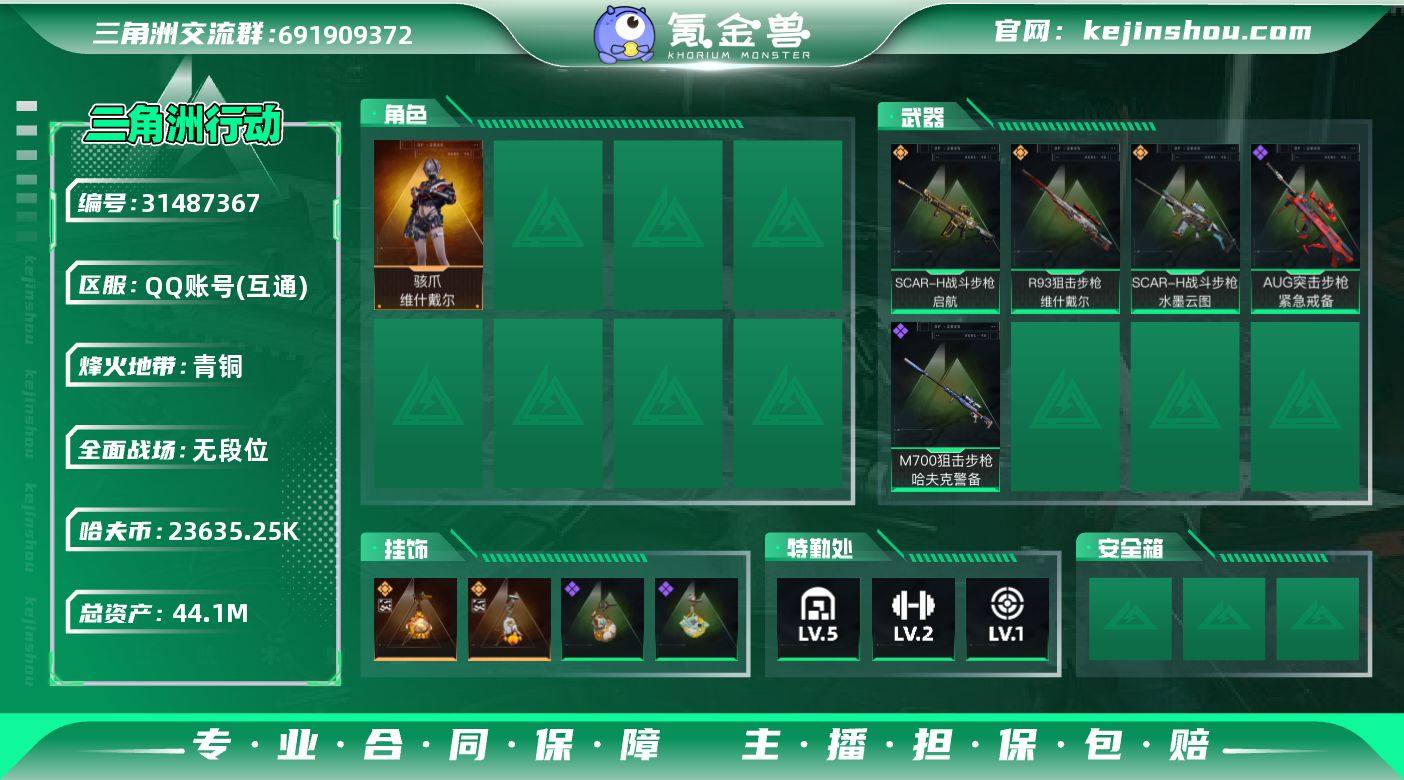 诚心出三角洲半成账号,总资产44M现金2300万,仓库有黄金鸟窝烽火杯限定红。麦晓雯联动红皮,由于创号时间短没办法更换实名,可小砍