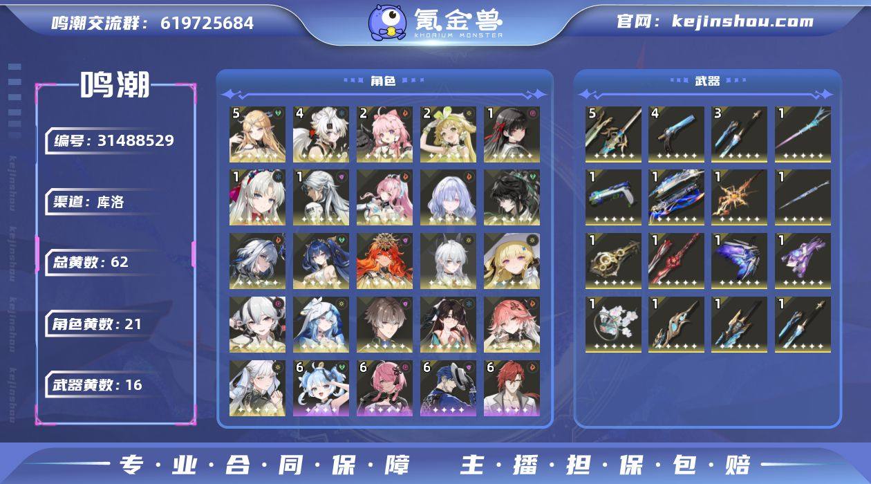 51卡提,11小爱,莫宁,1鸣千咲等等多角色,4皮肤