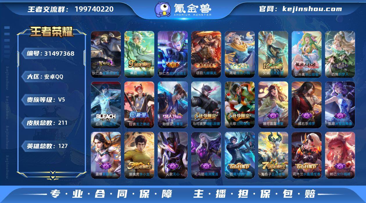 可立即换绑13842: 星际治安官 传说皮: 超时空战士-狄仁杰,神树通天 限定皮: 李小龙,游园惊梦,梁祝,至尊宝,高山流水,五谷丰年,鸣野蒿,逐霄战戟