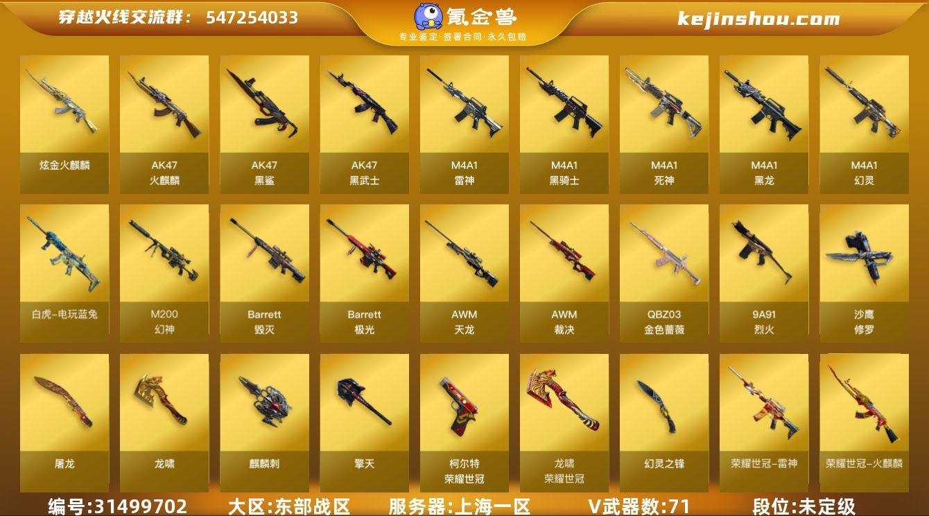 9294/东部/上海一区/可排位/【枪王2】【Lv.102 荣耀元帅】VIP6/71V/【幻神三件套】/幻神/幻神动感闪耀音效卡/幻神宠儿/幻神N9/幻神周瑜/王者风神/QBZ金色蔷薇/QBZ王者蔷薇/玄武/白虎电玩蓝兔/M4幻灵/天龙乔伊教练/柯尔特冠军之特/荣耀世冠柯尔特/4修罗/两套幻灵手雷/【无白虎】/白虎白鲨CFPLS23冠军/【皮肤音效卡】/毁灭荣耀之怒/毁灭SVCFPLS16冠军/裁决巅峰荣耀/裁决羽掣/火麒麟巅峰荣耀/雷神荣耀之魄/雷神LGD/雷神机甲刑天/雷神虎将/黑骑士伏羲/龙啸巅峰荣耀/屠龙荣耀之锋/黑骑士音效卡/雷神动感闪耀音效卡/死神雪域霜狐怀旧音效卡/炼狱百战金芒庆典舞曲音效卡/屠龙动感闪耀音效卡/【4个四防角色】/电竞教官云悠悠/王者春/王者沙漠玫瑰/王者涂鸦/【其他角色】/月兔特工/隼/荆棘玫瑰/职业选手/战地猎狐/雪域霜狐/葵阿尔法武装/修道士/乔伊教练/龙儿小淘气/云海玲珑///各种饰品/各种道具/细节看图/【封禁过十年已解除】/