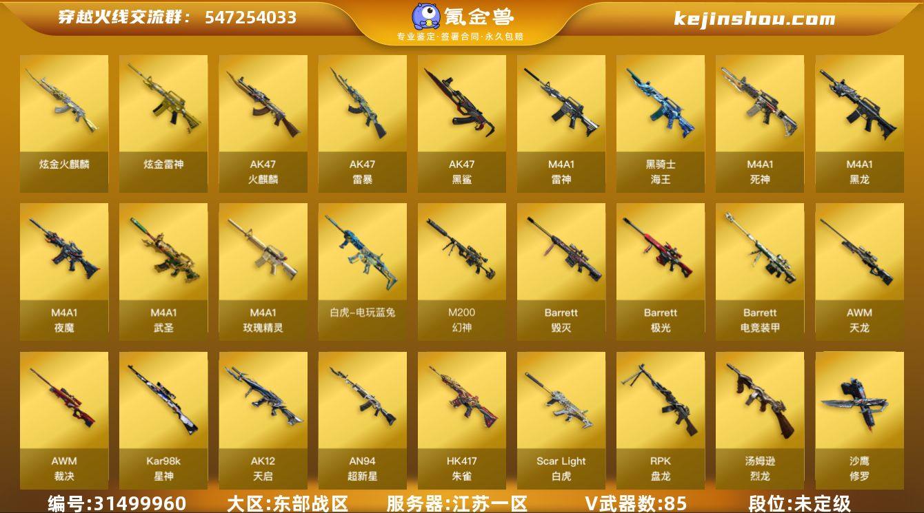 [15924597]9700/东部/江苏一区/【传奇5】/Lv.100 高阶大元帅/VIP6/85V/幻神/星神/白虎/朱雀/白虎电玩蓝兔/电竞装甲套/柯尔特电竞装甲/6烈龙/斯泰尔蝴蝶/3盘龙/2炼狱/3沙鹰天神/五套电竞装甲雷/【音效卡】/雷神音效卡/火麒麟音效卡/毁灭音效卡/极光音效卡/【枪皮】/火麒麟AG/火麒麟战神关羽/火麒麟轻羽/雷神星空/【四防角色】/灵狐者职业经理/【角色】/葵/王者零传说之路/奇洋探员/【小人枪】/火麒麟灵狐/COP旗袍/COP白鲨/【道具】/永久烟雾头/护目镜/超级背包/各种戒指/各种光效/各种玩偶/永久AC/永久雷包/细节看图/【此账号未被封过十年】