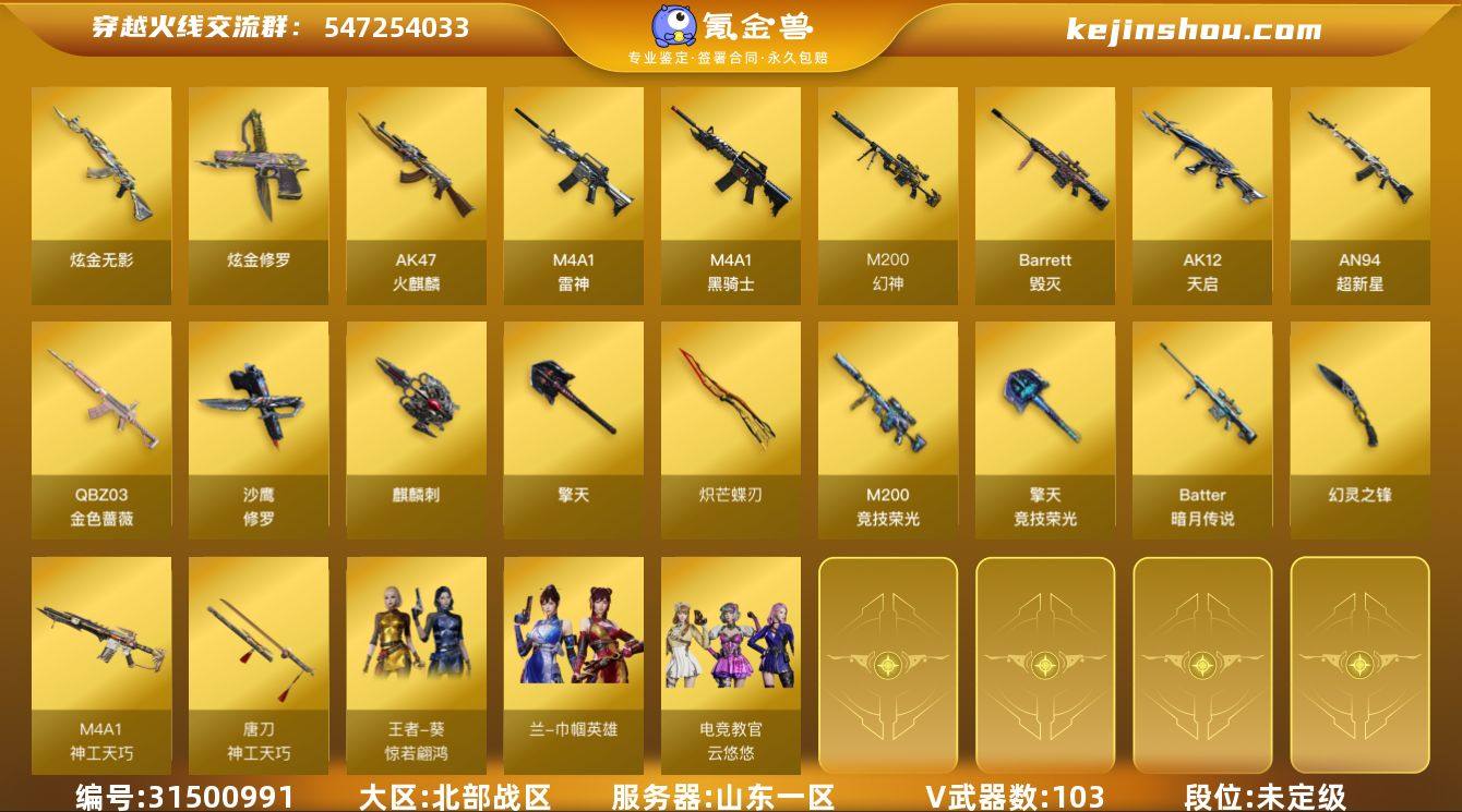 ABC9477/北部/山东一区/可排位/钱包注销/可二次/掌火ID;548560791/103V/【幻神三件套/QBZ金色蔷薇三件套/双传说/】/传说暗裔/传说辉光/幻神/幻神竞星跃动音效卡/幻神宠儿/幻神冠军之幻/M200竞技荣光/王者星神/炽芒蝶刃/QBZ金色蔷薇/王者白虎/朱雀电竞之星/柯尔特荣耀世冠EP*2/USP神功天巧*2/朱雀蛇隐宗/四防已开/研/王者葵惊若偏鸿/【四防未开】/电竞教官云悠悠/【音效卡】/QBZ金色蔷薇音效卡/黑骑士音效卡/炼狱音效卡/【皮肤】/毁灭枪娘格雷姐妹/QBZ传奇宠儿/雷神RLGDCFPLS18冠军/雷神宇航兔/毁灭战士张飞/毁灭冠军之怒/永久AC/细节看图/