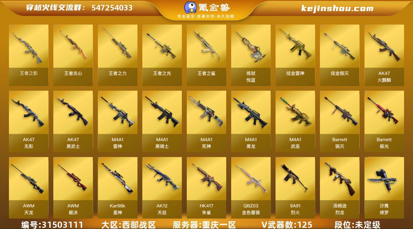 [16077889]9730/西部/重庆一区/【荣耀枪王202豆】/Lv.102 荣耀元帅/VIP6/125V/M200竞技荣光套/星神/QBZ金色蔷薇/朱雀/雷霆套/荣耀世冠柯尔特/柯尔特竞技荣光/COP堕天神/COP雷霆/USP雷暴/4烈龙/毁灭/七套雷霆雷/【音效卡】/雷神音效卡/火麒麟音效卡/死神雪域霜狐怀旧音效卡/毁灭音效卡/炼狱百战金芒庆典舞曲音效卡/擎天云海游龙音效卡/【无幻神】/幻神冠军之幻/【枪皮】/毁灭CFPLS/毁灭青帝/毁灭秦师/裁决运输船/裁决天津联赛/火麒麟荣耀世冠AG/火麒麟AG/火麒麟百城/雷神源计划2.0/雷神虎将/【四防角色】/王者春/王者魅影/王者葵惊若翩鸿/灵狐者职业经理/【道具】/永久烟雾头/护目镜/各种戒指/各种光效/各种玩偶/永久AC/永久雷包/细节看图/【此账号封十年已解】