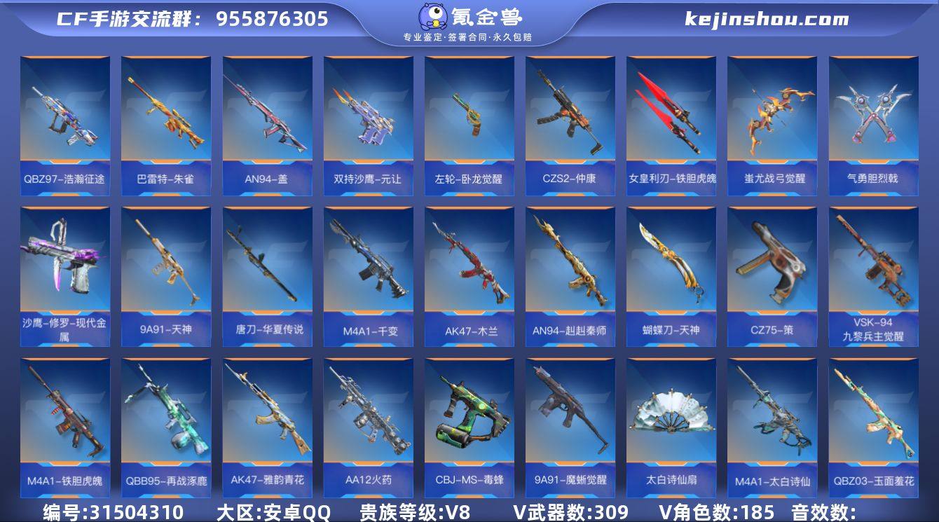 FC-QKQSVM 安卓QQ,成人号:是,角色等级:166,实名:有修改人脸机会/实名是本人,段位:枪圣,VIP等级:V9,V武器数量:247,V角色数量:11,V总数量:229,王者武器数:28,万化数量:474, 【人物角色】云悠悠,关小雨,幽灵刀锋-觉醒,堕天使,复仇者,葵,夏日灵狐,春节兰,审判者,曼陀罗,夜玫瑰,潘多拉,斯沃特,雅典娜,职场灵狐-赛事经理, 【王者武器】王者之兽,M12S-雷霆王者,王者之势闪光弹,王者之心手雷,王者之影手雷,王者之兽手雷,王者之心烟雾弹,王者之心闪光弹,王者之翼闪光弹,王者之影闪光弹,王者之影烟雾弹,王者之势烟雾弹,王者之翼烟雾弹,王者之心,王者之影,王者之魄,王者之势,王者之戮,王者之怒,王者之光,王者之魂,王者之灵,王者之锋,王者之啸,王者之击,王者之烈,王者之神,王者之狱, 【至尊套装】影至尊,戮至尊,怒至尊,心至尊,魄至尊, 【带V枪械】MK47-云舞-千变,AWM-天龙-魔神,王者之击-冰霜奇迹,AK47-无影-荣耀酷本,AK47-游骑兵-紫魇,AK47-黑武士觉醒-能量核心,M4A1-机械迷城,AK47-孟德-过载,AK47-幸运日觉醒-千变,M4A1-樱龙·超觉,M4A1-星象,M4A1-游骑兵,M4A1-黑龙,M4A1-黑骑士,M4A1-雷神,MK47-云舞,AK47-血武士,COP 357-雷神-能量核心,AK47-幸运日觉醒,AK47-孟德,AK47-奉先,AK47-竞技战魂,COP 357-堕天神,M4A1-雷神-枪神之魄,AK47-无影-葵,AK47-Rush-星速,M4A1-黑龙-能量核心,AK47-火麒麟-灵狐,M4A1-游骑兵-寒霜,AK47-冰魂觉醒,M4A1-黑骑士-电竞之皇,AK47-耀金伯爵,AK47-游骑兵,M4A1-雷神-荣耀蛮蛮,AK47-角斗士,AK47-沙漠领主,AK47-黑武士觉醒,AK47-火麒麟,AK47-无影,81式-光明之神,AN94-超新星,SKS-美杜莎,SCAR-文远,剑齿虎-炫彩,QBZ03-金色蔷薇,王者之心-冰霜奇迹,M200-幻神,巴雷特-毁灭-审判者,巴雷特-雷...