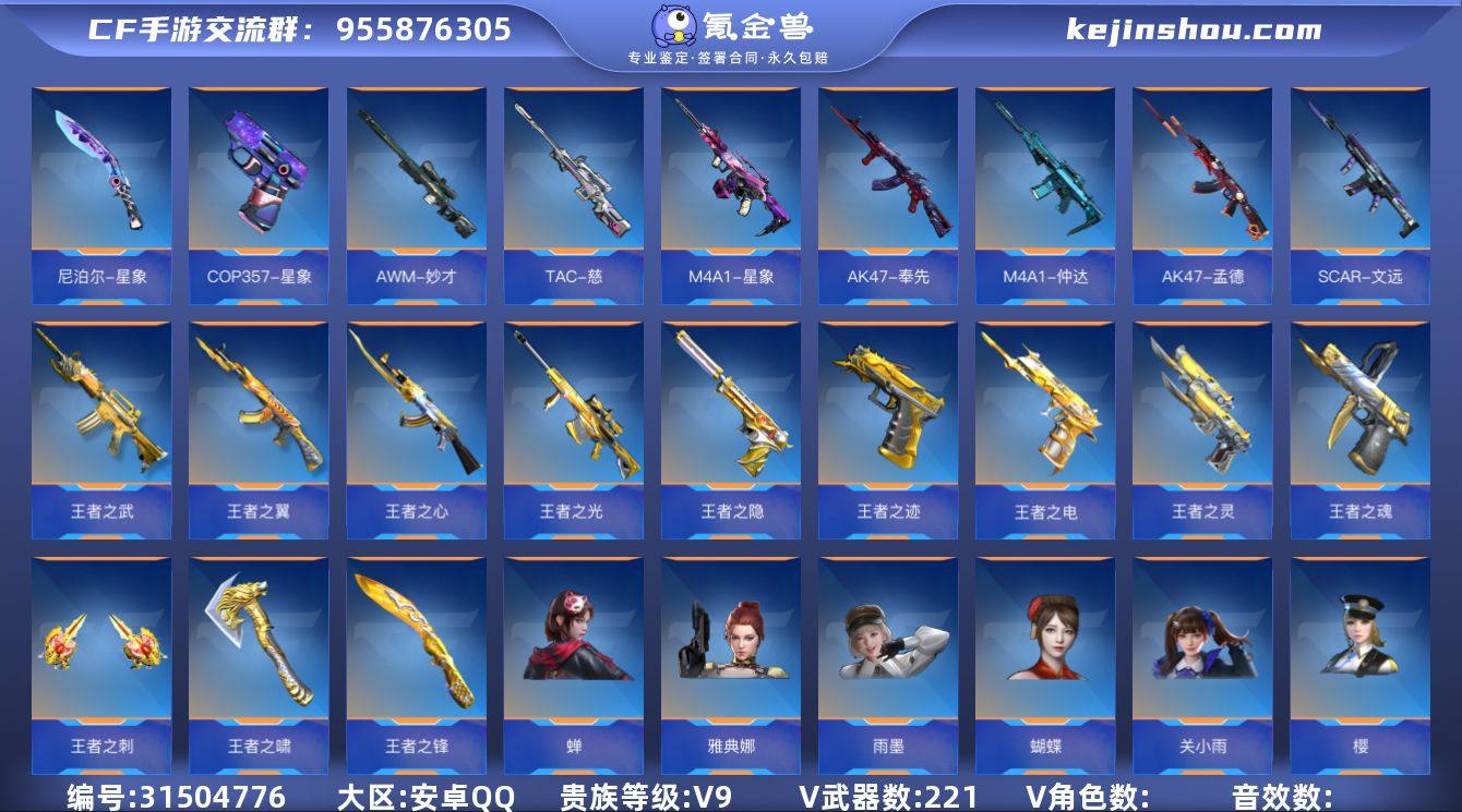 ABC10942/安卓QQ/贵9/可转区/钱包注销/可二次/221V不重复/48角色/442万化/5至尊/4同框/(差一把王魂开5同框)/48王者武器/仲达套/孟德套/过载/星象套/COP星象/COP堕天神/奉先/文远/妙才套/慈/威侯套/影至尊/心至尊/势至尊/魄至尊/腾至尊/王者之腾/冰霜奇迹/王者之势/王者之心/燃竞之巅/王者之影/冰霜奇迹/王者之翼/王者之魄/王者之武/冰霜奇迹/王者之光/冰霜奇迹/王者之誉/王者之隐/冰霜奇迹/王者之电/冰霜奇迹/王者之魂/拉丝/白金血钻/王者之灵/白金血钻/王者之迹/王者之仞/冰霜奇迹/王者之刺/不思进取/王者之锋/燃竞之巅/冰霜奇迹/白金血钻/王者之啸/白金血钻/王者之兽手雷套/王者之圣手雷套/王者之心手雷套*2/王者之势手雷套/冰霜奇迹/王者之影手雷套雷霆王者闪光弹/王者之竞闪光弹/【角色】/雅典娜/审判者/关小雨/雨墨/萝拉/蝉/樱/零/蝴蝶/葵/孤狼/火麒麟套/黑武士套/游骑兵套/毁灭套/无影套/御龙套/天使套/竞界荣光套/堕天神套/风神翼龙套/木兰套