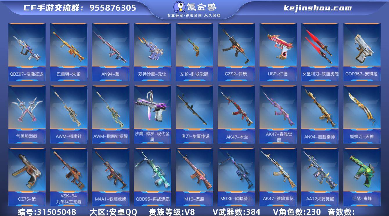 V8/25王者/384英雄/王者之腾+冠军EP/王者之势/王者之魄+拉丝皮/王者之影/王者之心/王者之尊/王者之狱/王者之蝶/P90雷暴王者/M12S雷霆王者/王者之魂+白金血钻/王者之隐+冰皮/王者之业+冰皮/王者之锋+拉丝皮/王兽手雷套装/王竞手雷套装/王影闪光弹/王翼闪光烟雾+拉丝皮/王圣闪光烟雾/AK奉先+无双/M4星象/M4仲达+烽火连城/AN94盖/M4游骑兵/M4竞界荣光/AWM妙才/TAC慈/M200幻神/VEPR12本初/VEPR12宙斯/雷霆COP*3/堕天神COP/安琪拉COP/黑铁COP+冰川守护/4屠龙/炽芒蝶刃/角色/虹儿/消灭音效/巴巴塔/能量核心/赏金猎人/现代战场/斩杀/