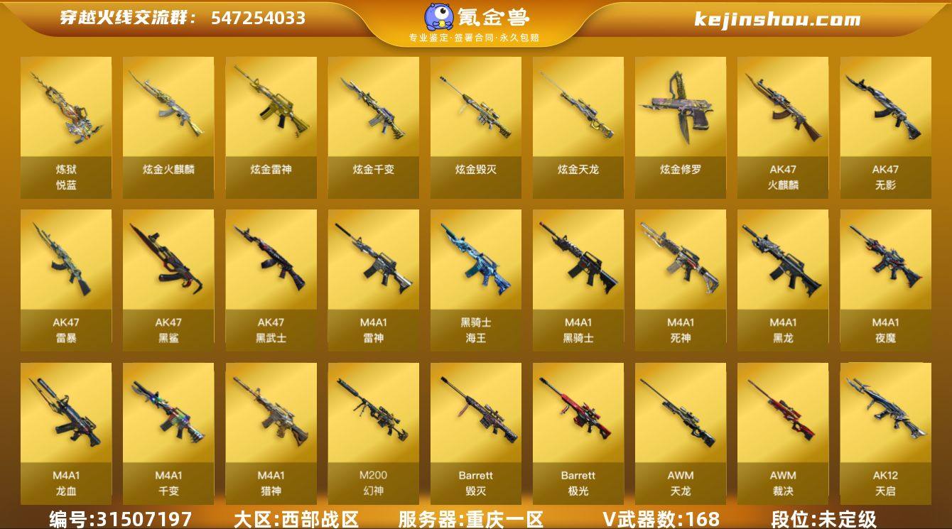 9699/西部/重庆一区/可排位/【Lv.102 荣耀元帅】VIP6/168V/幻神/幻神冠军之幻/白虎/雷暴套/夜魔套/裁决/USP雷暴/荣耀世冠柯尔特/荣耀世冠龙啸/王者之击/一套幻兽手雷/七套雷暴手雷/五套夜魔手雷/【生化】/6盘龙/6烈龙/斯太尔蝴蝶/异变清道夫/5炼狱/4修罗/【皮肤音效卡】/毁灭冠军之怒/毁灭英雄计划/火麒麟冠军之心/毁灭音效卡/雷神音效卡/黑骑士音效卡/火麒麟音效卡/炼狱百战金芒庆典舞曲音效卡/【1个四防角色】/王者葵貂蝉/【其他角色】/职业选手/零/葵/樱/魅影/春/战地猎狐/王者之瞳/葵阿尔法武装/修道士/乔伊教练/云海玲珑/零水下丽影/【玩偶武器】/M4刀锋/COP旗袍/夺魂/【挑战】/地狱征服者超越MAX///各种道具/各种饰品/细节看图/【此账号未被封过十年】