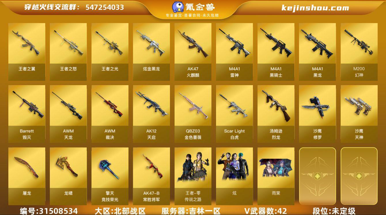 5327/【2.18可注销钱包】北部/吉林一区/可排位/【Lv.100 高阶大元帅】/42V/【幻神三件套2皮】/幻神/幻神音效卡/幻神巅峰荣耀/幻神星耀/QBZ金色蔷薇/QBZ王者蔷薇/QBZ金色蔷薇古蛇迷踪/白虎/雷神/黑龙/黑骑士/火麒麟/修罗/*3/【音效卡】/雷神音效卡/黑骑士音效卡/黑龙音效卡/【枪皮】/毁灭冠军之怒/M4A1千变孔明/雷神源计划2.0专属/雷神虎将/黑骑士冠军之势/黑龙冠军之势/黑骑士破界/【角色】/炫/雨棠/王者零传说之路/王者涂鸦/灵狐者职业经理/【小人枪】/朱雀蛇隐宗/迷你深渊冰龙/迷你白狐/【道具】/永久烟雾头/护目镜/超级背包/各种戒指/各种光效/各种玩偶/永久AC/永久雷包/细节看图/【此账号未被封过十年】