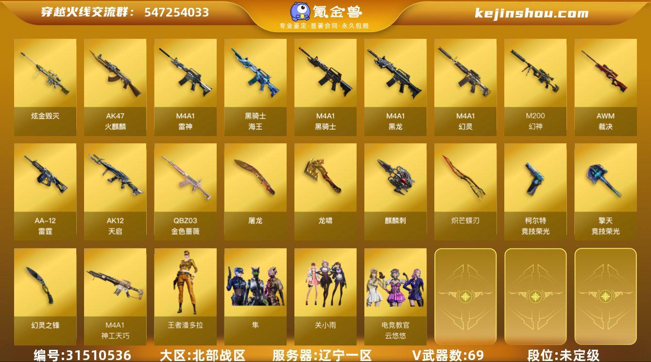 5357/【钱包无法注销】/北部/辽宁一区/可排位/【枪王2】/Lv.102 荣耀元帅/VIP3/69V/传说夜影/幻神/幻神冠军之幻/幻神纸灯龙/【QBZ三件套】/QBZ金色蔷薇/QBZ金色蔷薇音效卡/金色蔷薇破浪逐光/金色蔷薇古蛇迷踪/王者芳薇/QBZ独角III/朱雀电竞之星/炽芒蝶刃/炽芒蝶刃破浪逐光/柯尔特竞技荣光/独角之刃/麒麟刺王者堕天神/裁决/幻灵/五套竞技荣光雷/【枪皮】/毁灭航天科技/裁决流光秘银/火麒麟大唐荣光/雷神源计划/【四防角色】/电竞教官云悠悠/隼/王者潘多拉/【角色】/关小雨/葵阿尔法武装/云海玲珑/荆棘玫瑰/铁骑荣耀/【小人枪】/朱雀蛇隐宗/裁决雪莉杨/【道具】/永久烟雾头/护目镜/各种戒指/各种光效/各种玩偶/永久AC/永久雷包/细节看图/【此账号封十年已解】