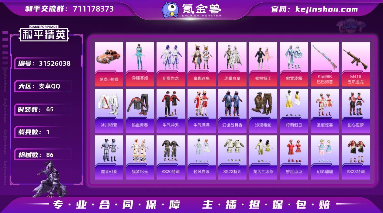 妹妹素材号 可改实名 1载具6粉装2特效枪 小白龙 童趣迷兔 俏皮小熊猫 5级M416五爪金龙 1级98K巳巳如意 异瞳寒姬 新星烈龙 蜜桃特工 童趣迷兔 冰霜白皇 傲雪凌霜 白糯汤圆 绝对偶像 惊鸿侠骨 晨曦薄雾 空岛之星 霓虹街区 梦幻奶油 纯白誓言 童趣迷兔眼镜 飞行器:星之信仰 降落伞:晶梦幻蝶 莲影清波 甜蜜誓约 童趣迷兔 王牌印记2 热力值27568 K27235 和平精英买号永久包赔带二次营地ID:919771482