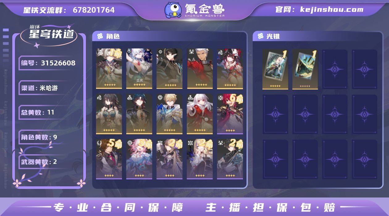 总黄数:11 五星光锥数:2 五星角色数:9 开拓等级:50 开拓者性别:男 星轨专票:0 梦华数量:0 星琼数量:73 1命流萤,0命爻光,0命丹恒·腾荒,0命Archer,0命花火,0命阮·梅,0命刃,0命杰帕德,0命克拉拉 1精梦应归于何处,1精星海巡航 换绑材料:可提供换绑材料 邮箱状态:未绑定 psn绑定情况:否 taptap绑定情况:否
