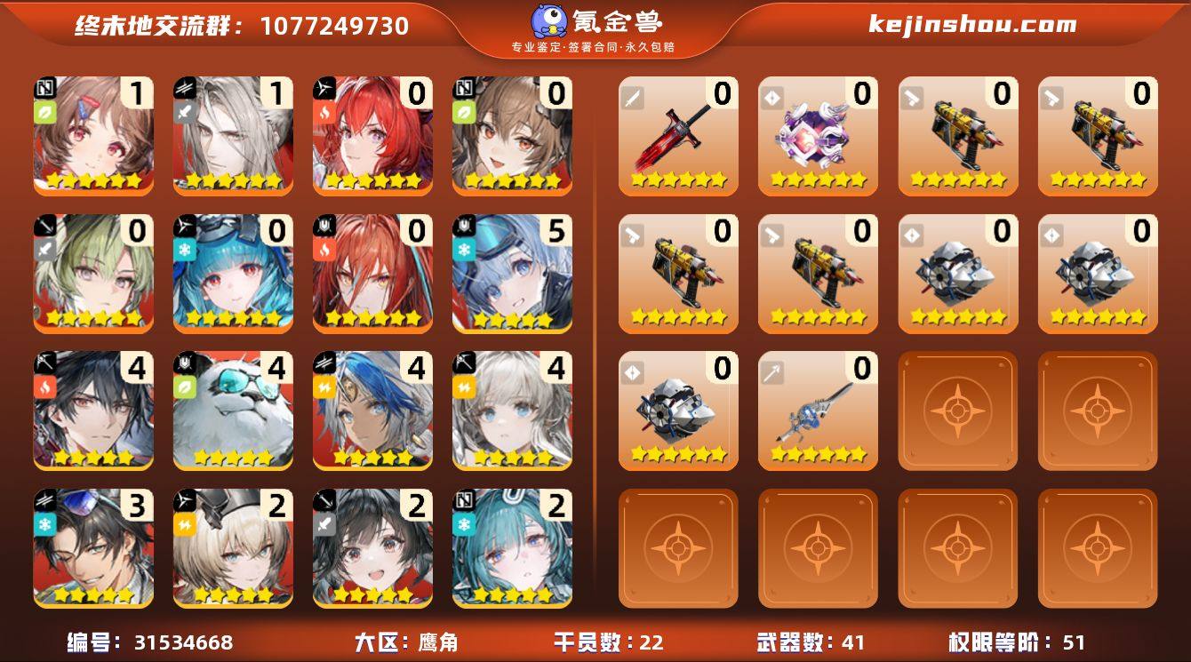 账号等级50多级,大部分角色都有,基建已经搞定,新手可爽玩