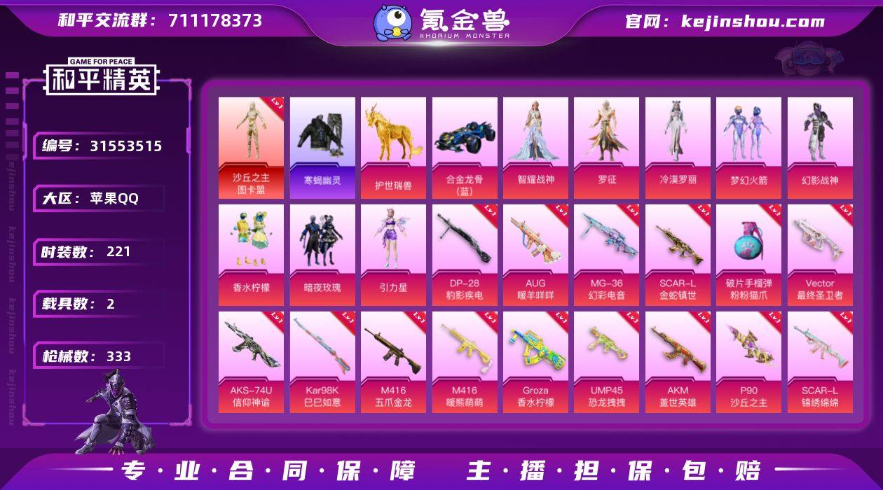 无敌战神框 1红装 8粉装 16粉枪 2载具 2稀有装备 221套装 333枪皮 53热门 护世瑞兽 合金龙骨蓝色 寒蝎幽灵 派对舞王 沙丘之主-图卡盟 稀有紫装-寒蝎幽灵 梦幻火箭 香水柠檬 暗夜玫瑰 机械征服者 吉莉礼服 军械专家 北国孤狼 幻羽潜行 虎虎生威吉莉 疯狂小兔子 舞夜骑士 白熊同盟 炫蓝之夏 萌黄之夏 玩偶服-菲菲 神秘舞者 牛气满满 甜蜜告白 原初圣火 荣耀 逆风勇士 萌趣颜团子 电音精灵 丝绸行者 镭射皇者 银白舞王 软羊咩咩 迅捷之星 治愈之星 科技之星 浪漫樱花 闪银刀客 暴风机械师 福星高照 神气柴柴 深海来使 时空追击者 甜梦熊熊 浑天鲲鹏 幻彩翩翩 柠萌假日 青玉碎影 飞驰魅影 旷野奇兵 龟仙人 音速流光 粉团憨憨 涂山之恋 冷焰舞者 空岛之星 贝斯之夜 贵族骑装 都市漫游者 惊鸿侠骨 萌趣咩咩 竞技名士 娇憨猪猪 锦衣飞扬 荧惑魅影 绚紫流光 深蓝色名流 龙的传人 玉兔迎春 快闪甜心 特战装甲 田园牧歌 春光漫游 战地菁英 轻风白浪 蓝色守护者 雨林探路者 绯格组合 街舞之王 青春校园 冰冻风暴 滨海假日 怒火燎原 耀眼新星 旭日情侣 血色贵族 缤纷果语 野性战心 Alan Walker 潮流先锋 风行保卫者 格斗先锋 幻世战舞者 麻辣教官 冰川特警 夏日音浪 热血青春 沙漠兵团 探宝勇士 酷潮明星 幻影战神 角色-冷漠罗丽 角色-罗征 角色-引力星 角色-智耀战神 AKM-盖世英雄(7级) SCAR-L-金蛇镇世(3级) Vector-最终圣卫者(3级) P90-沙丘之主(3级) M416-五爪金龙(1级) M416-暖熊萌萌(5级) UMP45-恐龙拽拽(7级) SCAR-L-锦绣绵绵(5级) GROZA-香水柠檬(5级) 破片手榴弹-粉粉猫爪(5级) AKS-74U-信仰神谕(7级) Kar98K-巳巳如意(5级) 蜜獾-辉耀战甲(4级) AUG-暖羊咩咩(5级) DP-28-豹影疾电(4级) MG-36-幻彩电音(5级) AG战队服 浪漫天命 雪山精英(老6服) 鹰眼刺客 机械英豪 迅捷狂鲨 暗影哥特(红眼