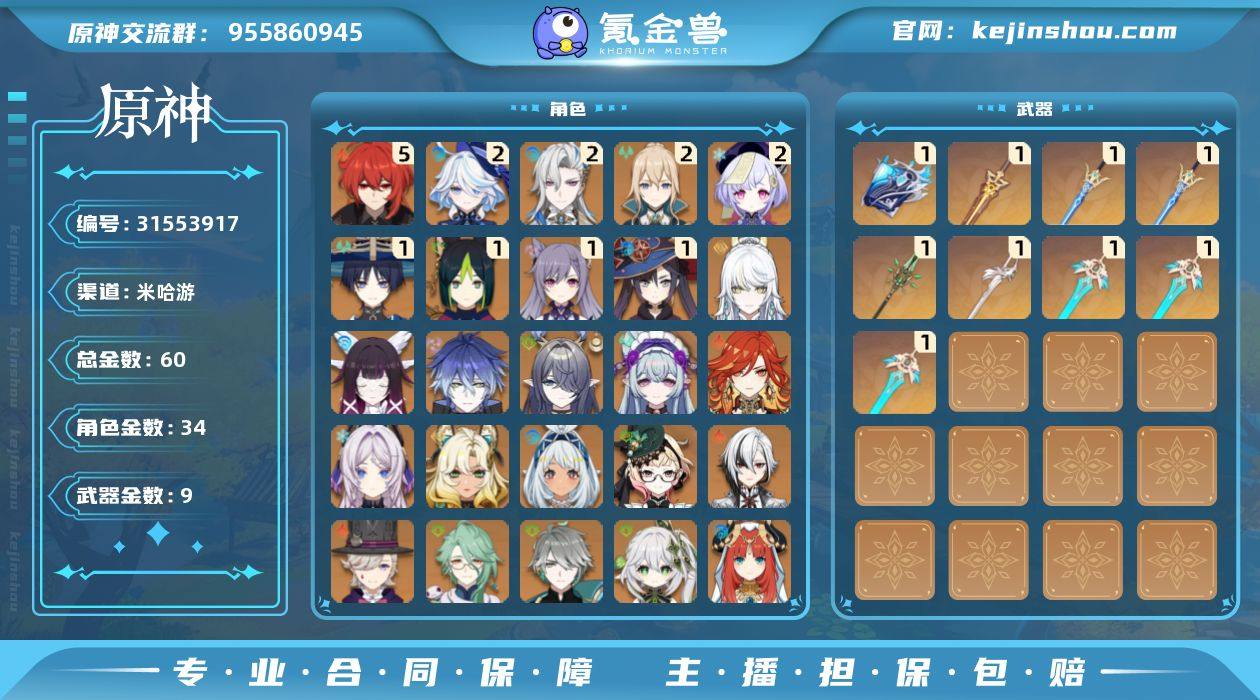 原神高练度成品号,角色多,五星全齐,图鉴进度高,账号深度练度,歌尘壶很漂亮,抽卡次数多(23000+原石)。 官服账号,送一般练度崩铁,一起出。 账号安全,喜欢直接拍,价格可聊~