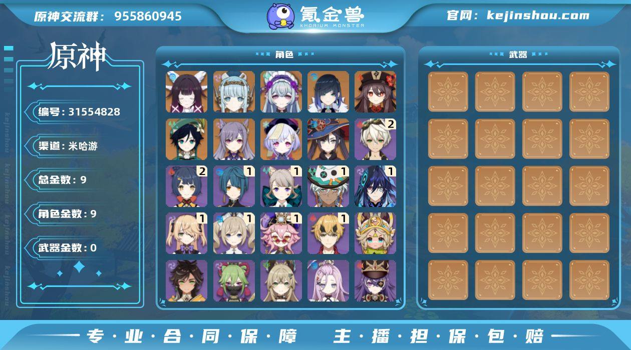 冒险等级:51 总黄数:9 5星角色数:9 5星武器数:0 原石数量:69 纠缠之源数量:0 0命哥伦比娅,0命伊涅芙,0命梦见月瑞希,0命夜兰,0命胡桃,0命温迪,0命刻晴,0命七七,0命莫娜 2命班尼特,2命香菱,1命琳妮特,1命欧洛伦,1命行秋,1命伊法,1命芭芭拉,1命多莉,1命菲谢尔,1命托马,0命爱诺,0命久岐忍,0命卡齐娜,0命绮良良,0命赛索斯,0命夏沃蕾,0命安柏,0命北斗,0命重云,0命迪奥娜,0命九条裟罗,0命凯亚,0命卡维,0命坎蒂丝,0命柯莱,0命丽莎,0命诺艾尔,0命瑶瑶,0命早柚 100%侦察骑士,星与月之约