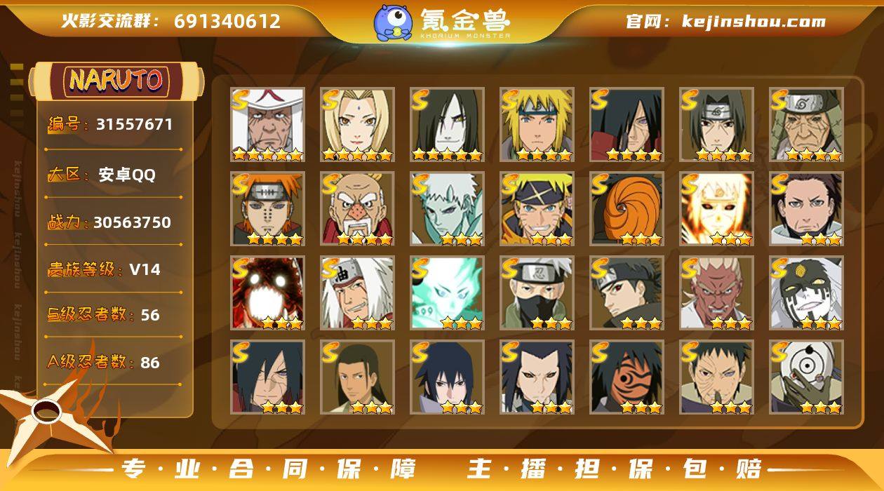 3000万战力基本全忍者,忍法帖198已经买了,号里还有40000多金币,本服第8