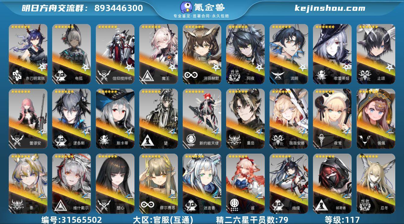 等级117 合成玉4470原石132 背包寻访凭证3 中坚寻访凭证8 两张六星自选(含艾雅法拉/塞雷娅/风笛/史尔特尔:煌/银灰/塞雷娅/能天使/山/棘刺)