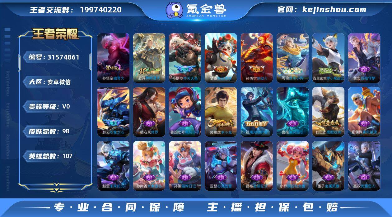 贵族等级:V0 典藏皮肤数:0 珍品无双皮肤数:0 无双皮肤数:0 珍品传说皮肤数:0 传说皮肤数:4 史诗皮肤数:20 皮肤数:98 英雄数:107 段位:铂金 卖家说:急需用钱,四颗钻石水晶,一颗玲珑水晶,一个王者印记,2500战令币