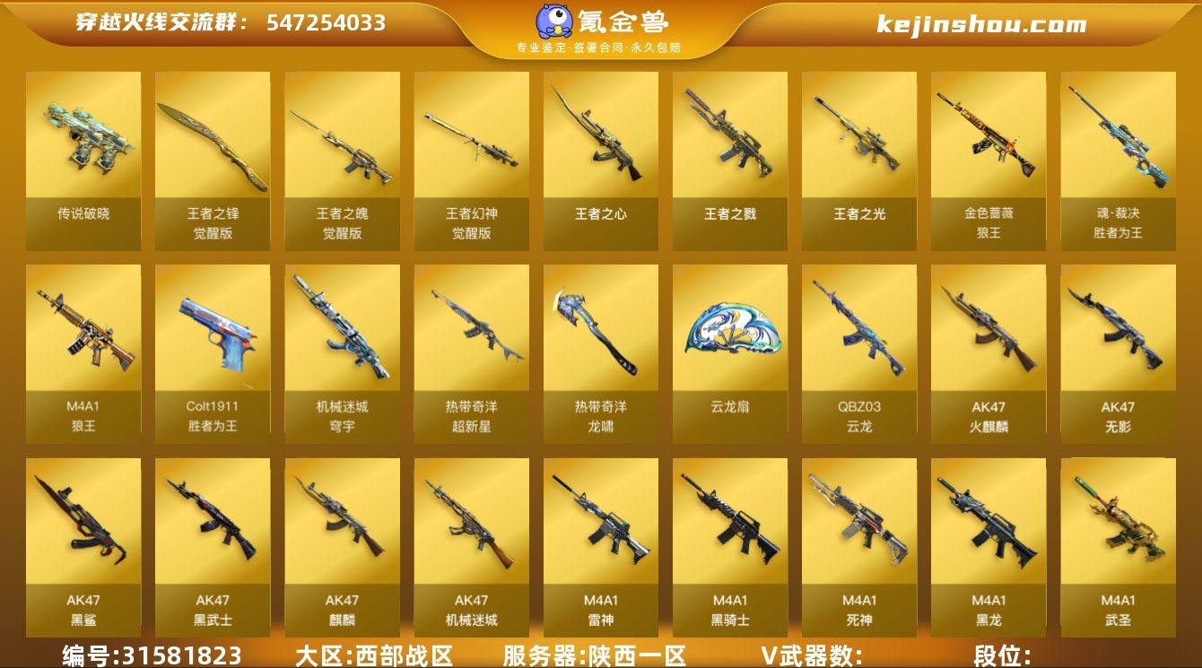 LC8051/西部/陕西一区/可排位/141v/【传说四防角色/传说影煞】/传说破晓/【幻神三件套/幻神/幻神2022LCVP/幻神宠儿/幻神音效卡】/王者幻神/觉醒版/6盘龙/6烈龙/白虎/白虎霓虹机甲/QBZ金色蔷薇/*3/QBZ金色蔷薇传奇宠儿/COP云龙/*2/炽芒蝶刃/*2/【四防角色】/王者葵貂蝉/王者瞳闭月羞花/【角色】/葵/迷迭香/樱/炫/奇洋探员/王者零/王者之瞳/【音效卡】/雷神音效卡/黑骑士音效卡/毁灭音效卡/【枪皮】/龙啸蛇姬/天启暗月/无影能量核心/毁灭耀金/【王者】/王者之心/王者之戮/王者之魄/王者之光/王者之锋/【小人枪】/火麒麟灵狐/LCK5炽火炎龙/牛牛AK/永久AC/有过十年记录/找回包赔