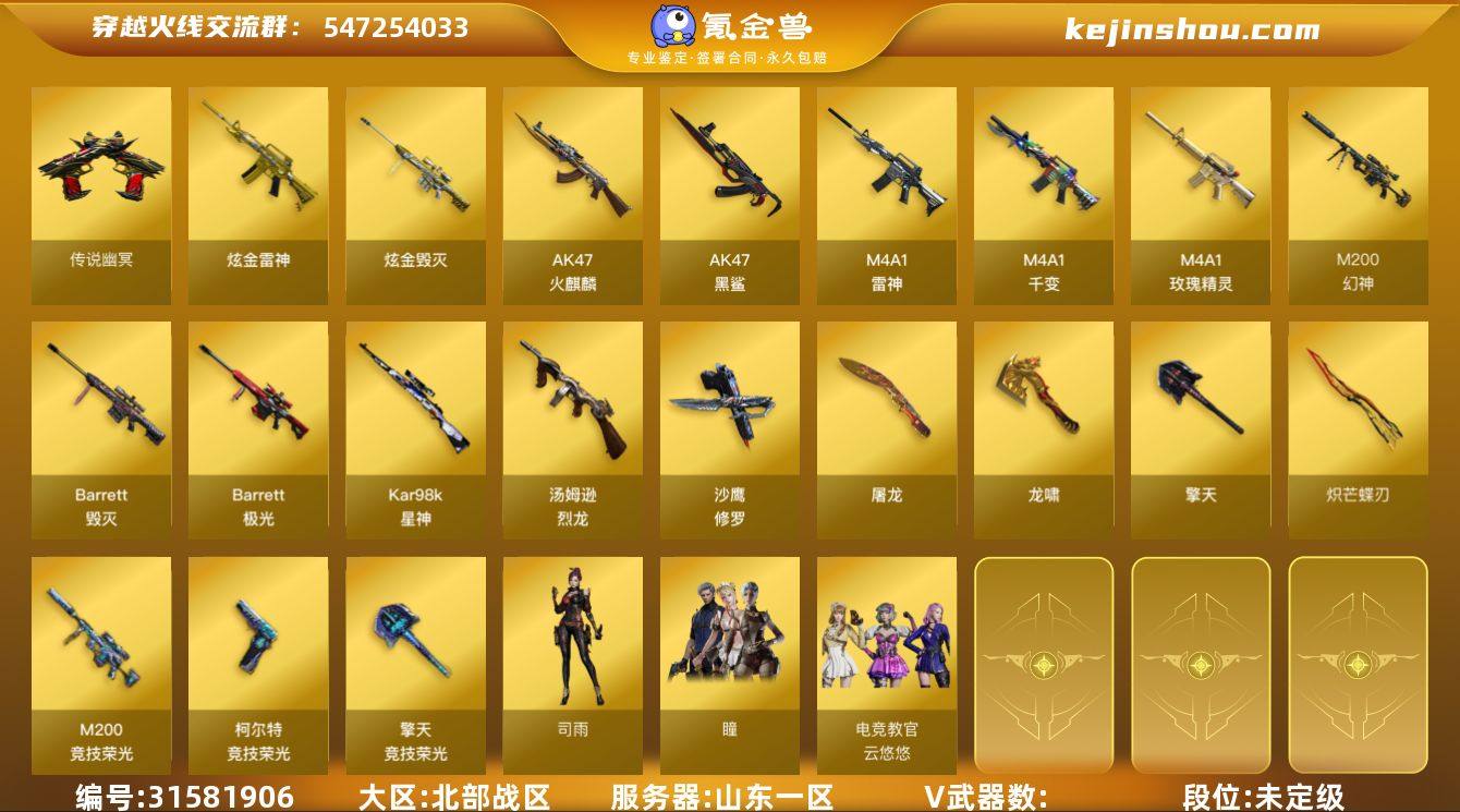 8049/北部/山东一区/可排位/65v/传说幽瞳/传说幽冥/【幻神三件套/幻神/幻神黄忠/幻神星火小队/幻神音效卡】/【200竞技荣光套装/200竞技荣光/柯尔特竞技荣光/擎天竞技荣光】/星神/星神音效卡/炽芒碟刃/【角色】/电竞教官云悠悠/瞳/星际战将/幻面灵狐/蛇隐宗/【音效卡】/火麒麟音效卡/朱雀电竞之星音效卡/雷神音效卡/屠龙电竞之星牙科/QBZ金色蔷薇古蛇迷踪音效卡/【枪皮】/毁灭HeartShot/屠龙星耀/雷神RLGDS18冠军/屠龙破浪逐光/裁决运输船/【炫金】/炫金雷神/炫金毁灭/【小人枪】/朱雀蛇隐宗/毁灭孙三炮/永久AC/有过十年记录/钱包无法注销/找回包赔