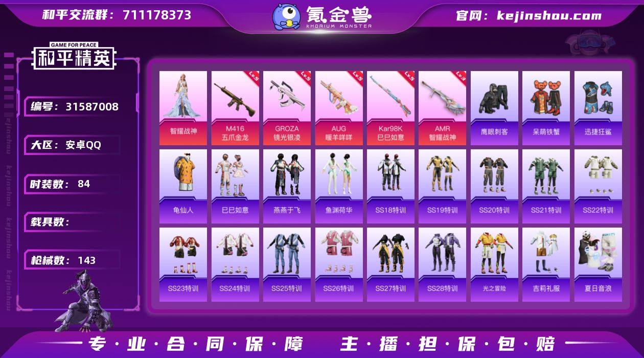 【FK6290】84套装/枪械6/装备125/战备82/王牌印记5/热力值39010/五级M416-五爪金龙/五级GROZA-镜光银凌/五级AUG-暖羊咩咩/五级Kar98K-巳巳如意/三级AMR-智耀战神/龟仙人/智耀战神/M416五爪金龙/GROZA-镜光银凌/AUG-暖羊咩咩/Kar98K-巳巳如意/Mk14-福马献瑞/AMR-智耀战神/梦幻火箭降落伞/垂柳戏鸭降落伞/炫光之旅降落伞/巳巳如意/燕燕于飞/鱼渊荷华/AKM-彩虹符号/AKM-百万伏特/AKM-破晓战魂/AKM-萌趣颜团子/AKM-霓虹街区/AKM-龙的传人/M16A4-幻世战舞者/M16A4-红色方程式/M16A4-蓝色火焰/SCAR-L-夜灯/SCAR-L-玉兔迎春/SCAR-L-红色方程式/SCAR-L-小狗蛇点点/M416-彩虹嘻嘻猴/M416-糯团青竹/M416-红色方程式/M416-绯红前夜/M416-蓝色火焰/GROZA-异彩先驱/GROZA-彩虹符号/GROZA-恐龙拽拽/GROZA-懵萌河马/AUG-天降萌叽/AUG-耀粉歌者/QBZ-彩虹符号/QBZ-未来歌姬/QBZ-飞驰魅影/M762-天降萌叽/M762-快乐主宰/M762-甜心宝贝/M762-绒雪飘舞/MK47-妙红点点/G36C-懵萌河马/AC-VAL-天降萌叽/蜜獾-娇憨猪猪/UZI-娇憨猪猪/UZI-红色方程式/UMP45-夜灯/UMP45-涂山之恋/UMP45-生命誓言/UMP45-蓝色火焰/Vector-彩虹符号/Vector-生命誓言/汤姆逊-异彩先驱/汤姆逊-耀粉歌者/野牛-夜灯/MP5K-异彩先驱/P90-飞驰魅影/P90-巳巳如意/Kar98K-影袭/Kar98K-炫彩节奏/Kar98K-红色方程式/Kar98K-飞驰魅影/M24-炫彩节奏/AWM-不夜海上花/SKS-炫彩节奏/VSS-彩虹符号/Mini14-异彩先驱/Mini14-耀粉歌者/SLR-娇憨猪猪/莫辛纳甘-懵萌河马/AMR-妙红点点/M417-惊鸿侠骨/M200-惊鸿侠骨/S686-生命誓言/S686-红色方程式/S686-巳巳如意/S1897-炫彩节奏/S1897-飞驰魅影/S12K-玩趣呆呆/S12K-破晓战魂/S12K-娇憨猪猪/S12K-幻世战舞者/DBS-彩虹符号/DBS-第五大道/M249-妙红点点/M249-彩虹符号/M24